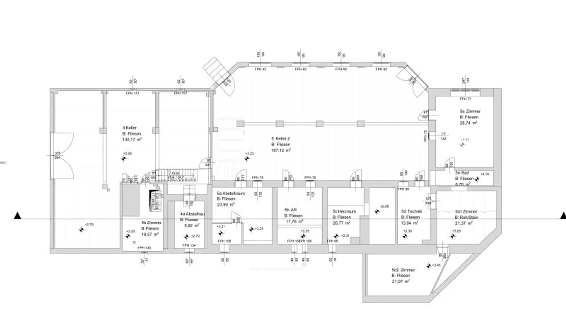 UG: Saal mit ca. 160 m², Heizraum, ehemalige Stallungen, Nebenräume, Badezimmer