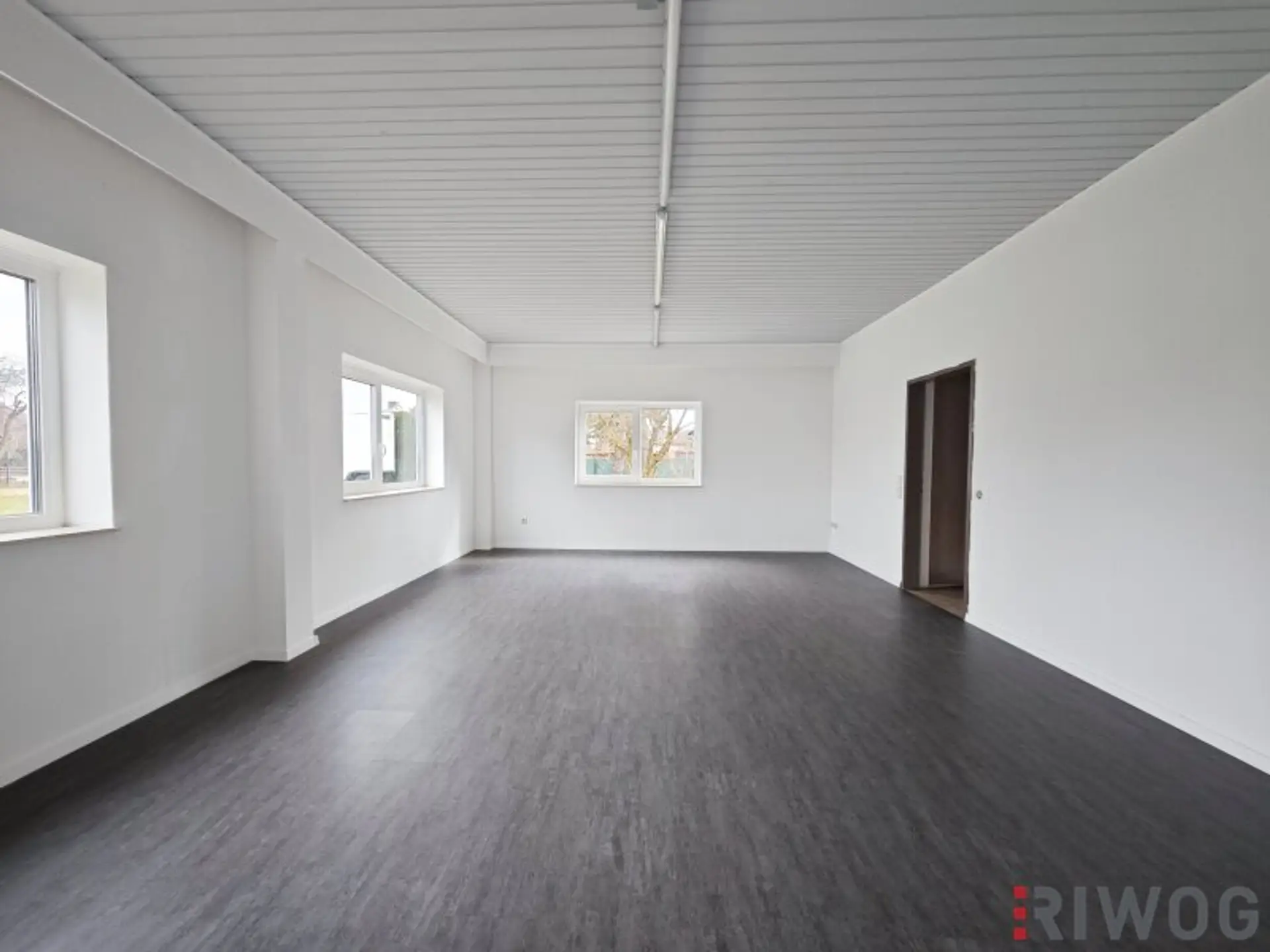 Zur Vermietung gelang eine Halle mit Rampen und einer ebenerdige Einfahrt. Die Halle verfügt über insgesamt ca. 2.025m² und über einen Bürobereich im vorderen Teil. Da die Halle ziemlich mittig mit einer Brandschutzwand unterteilt ist, ist eine Anmietung der Gesamtfläche oder der Teilfläche (ca. 1.100m² inkl. ca. 145m² Büro möglich).