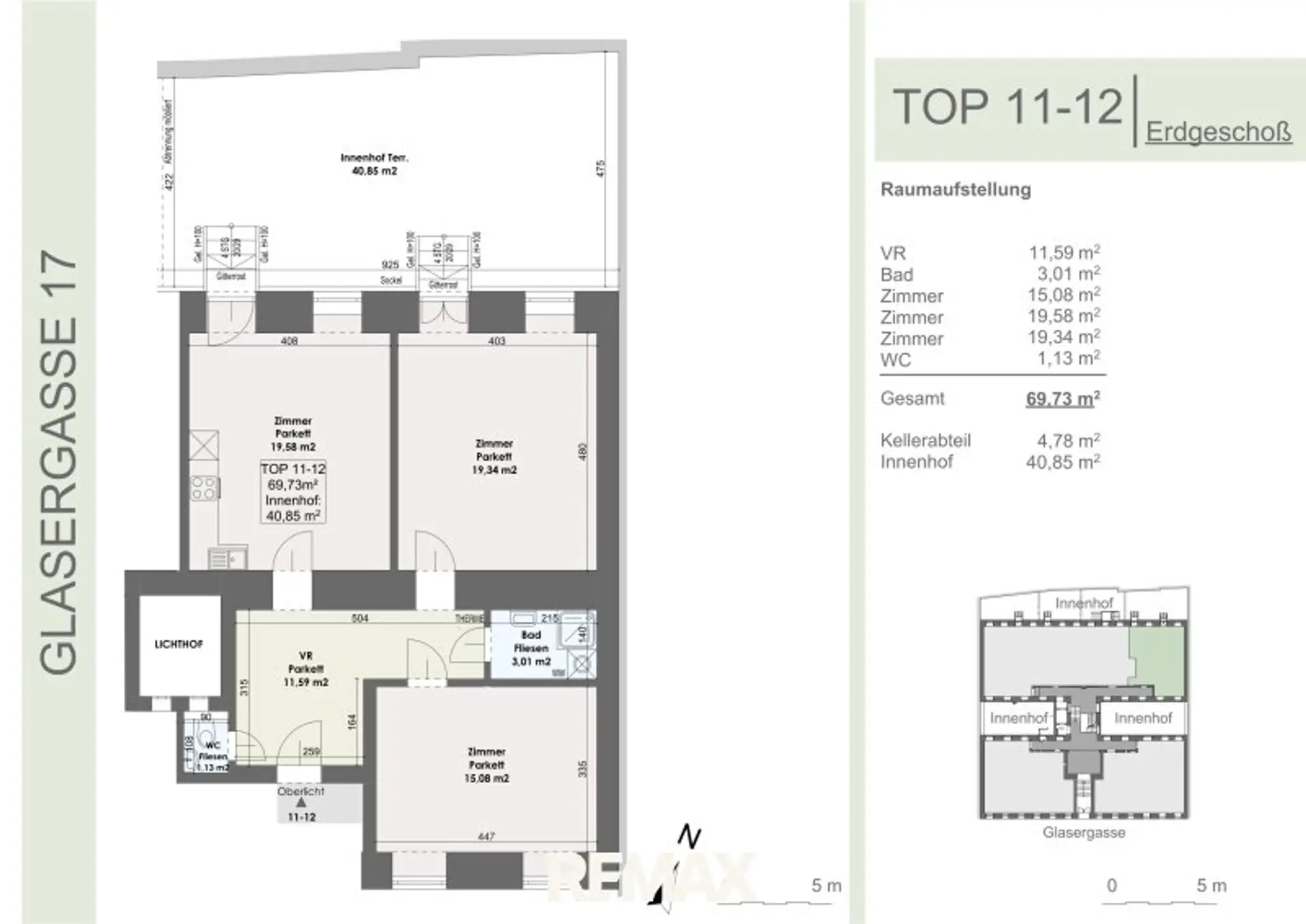 Flächenangabe, gemäß NWG ohne Freifläche und Keller (alles ca. Angaben):
