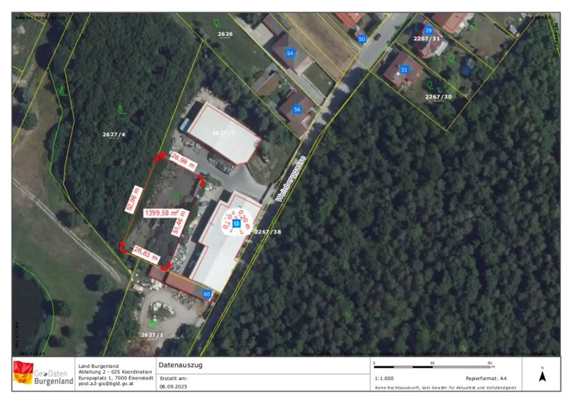 Diese Gewerbe-Liegenschaft befindet sich am Rand der Ortschaft Zagersdorf, nur ca. 3 Minuten von Siegendorf, 10 Minuten von Eisenstadt und 50 Minuten von Wien (über A3) entfernt.