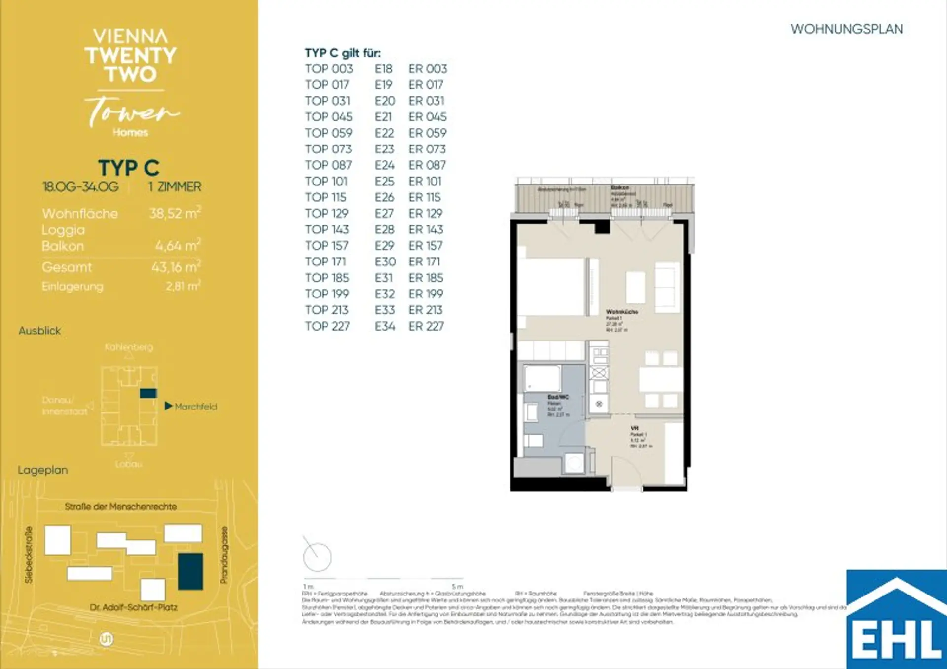 1,5-Zi.-Erstbezug mit Loggia & Rooftop Spa | TOWER HOMES im V22