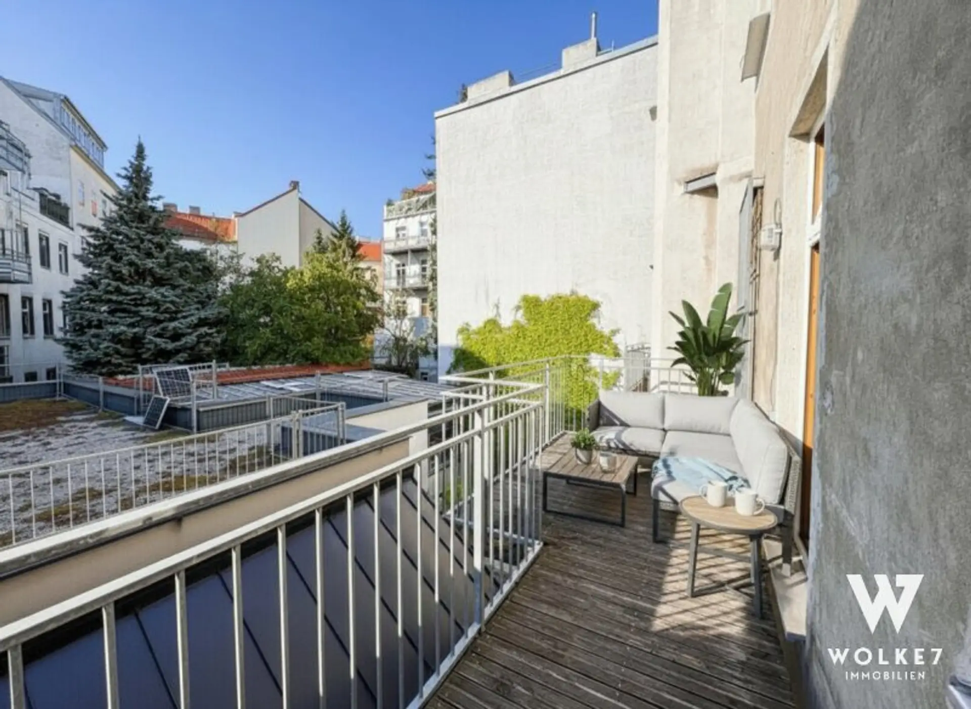 Ein besonderes Highlight ist der hofseitig gelegene Balkon mit ca. 10 m², der viel Platz für entspannte Stunden im Freien bietet – ganz ohne direktes Gegenüber.