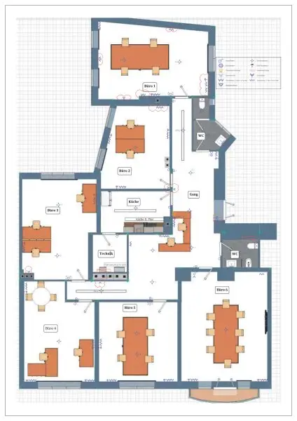 Zur Vermietung steht ein großzügiges Büro mit insgesamt 209 m2 Nutzfläche im 1. Obergeschoss, welches durch die insgesamt 6 Bürozimmer besonders viel Platz und Flexibilität bietet.