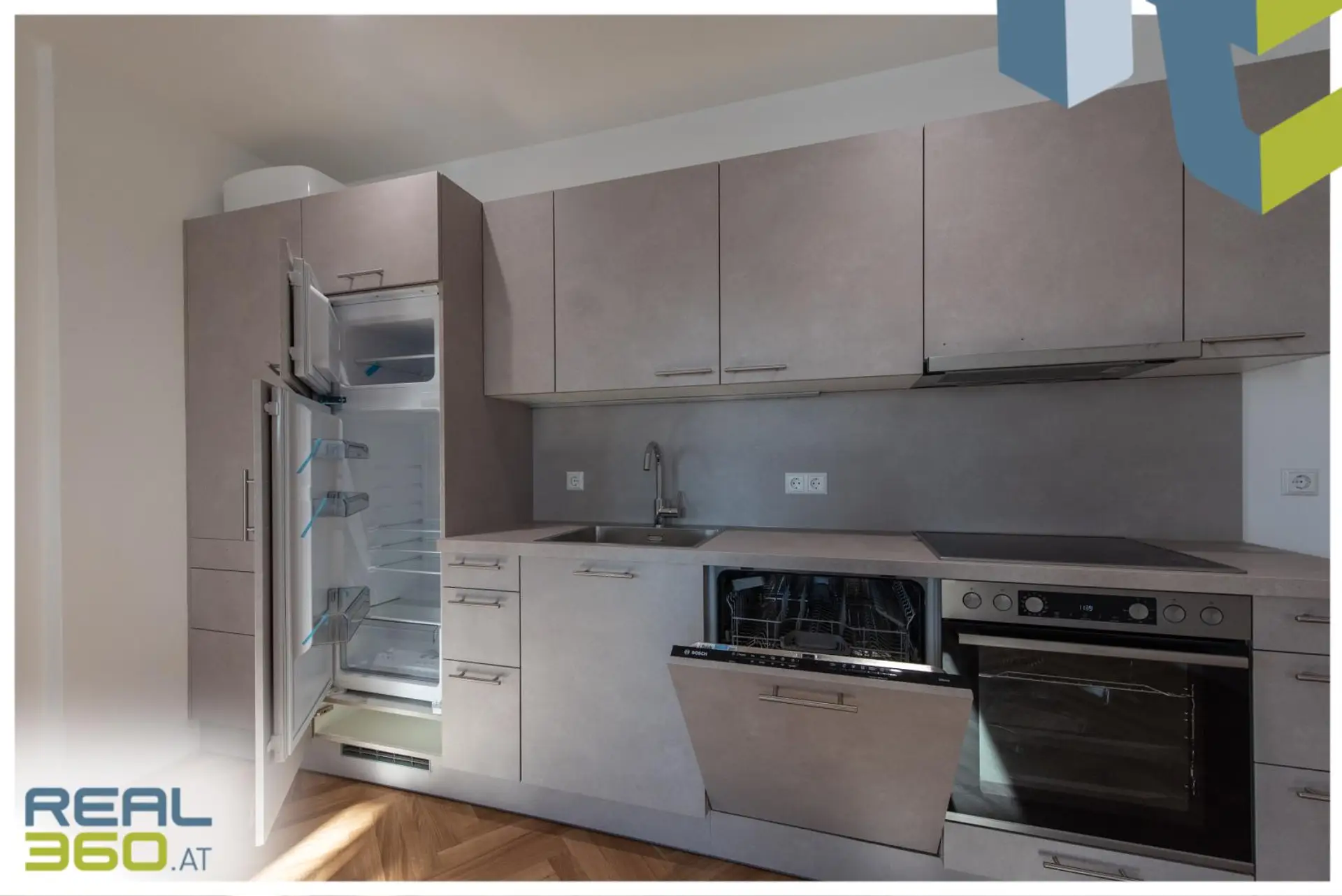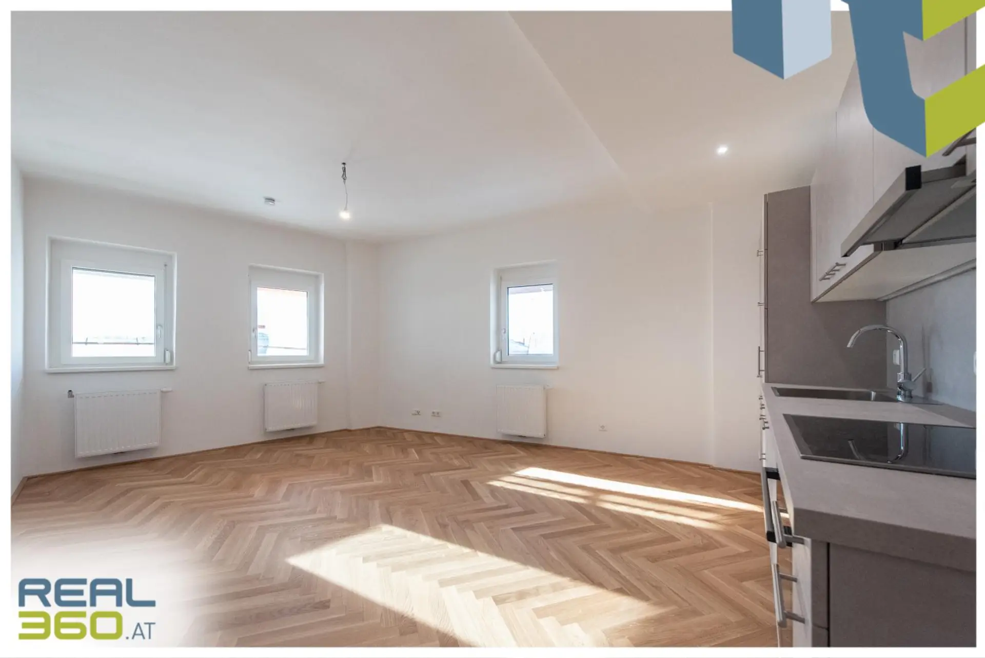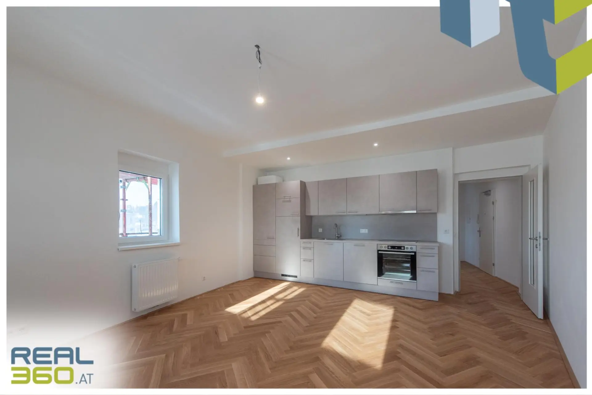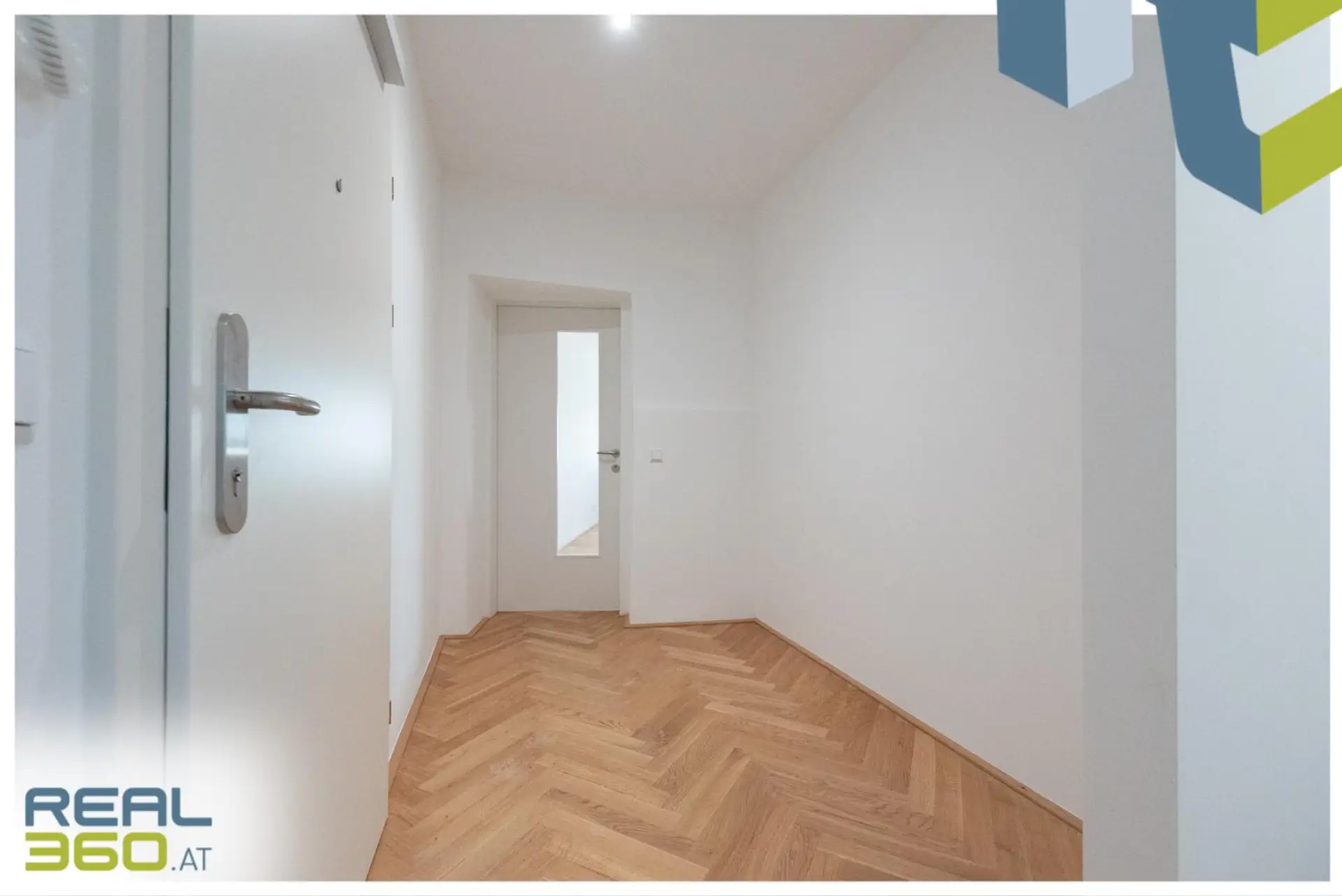 Die Wohnung wird ab Jänner zur Erstvermietung nach Generalsanierung angeboten und befindet sich aktuell in der Endphase der Fertigstellung. Die hochwertige Ausführung umfasst Echtholzparkett im Fischgrätmuster, großformatiges Feinsteinzeug in Sandsteinoptik sowie eine Küche in Erstausstattung, die den zeitlosen Charakter der Wohnung unterstreicht.