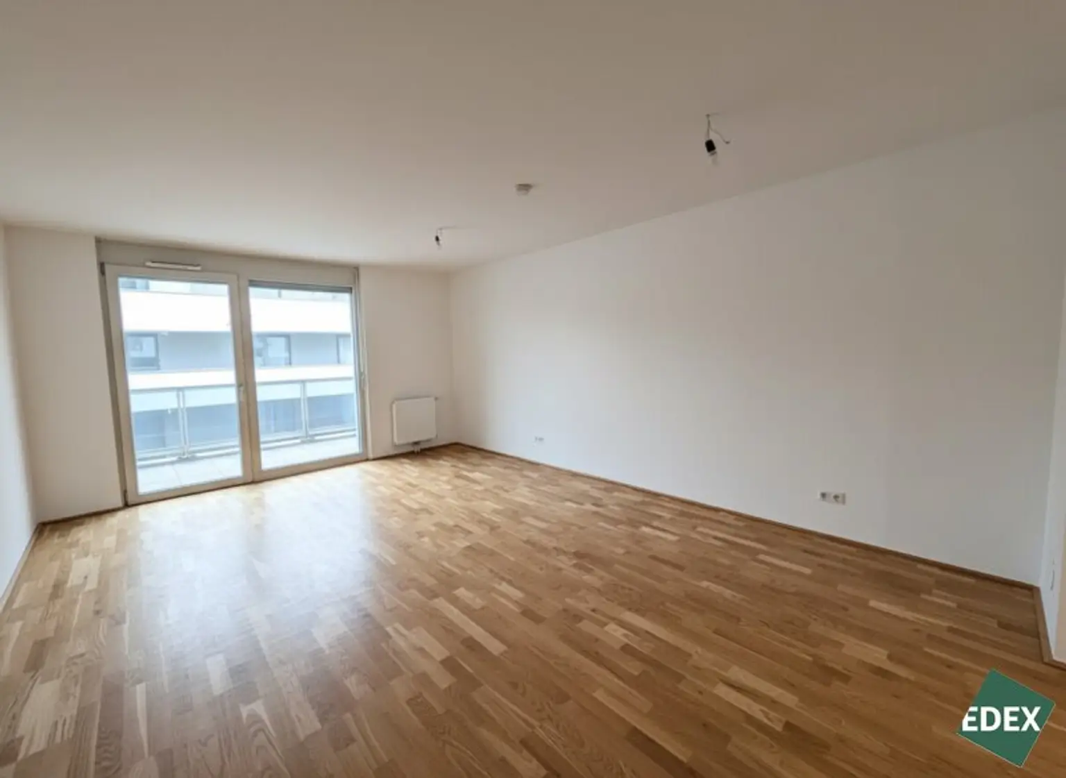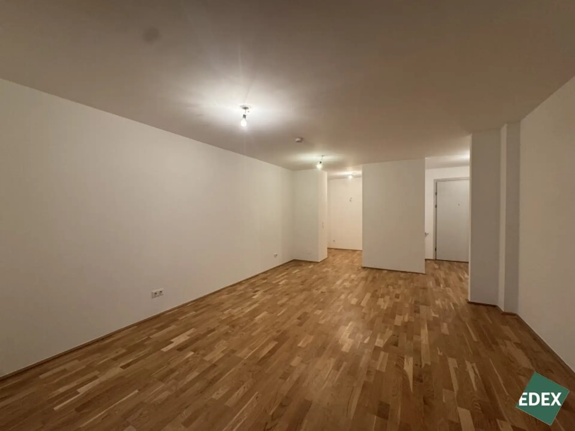 Der großzügige Wohnraum mit offener Kochnische schafft ein helles, freundliches Ambiente und führt direkt auf die Balkon/Loggia, die zum Verweilen einlädt. Sämtliche Anschlüsse für eine Küche sind vorhanden; eine moderne Einbauküche wird noch eingebaut.