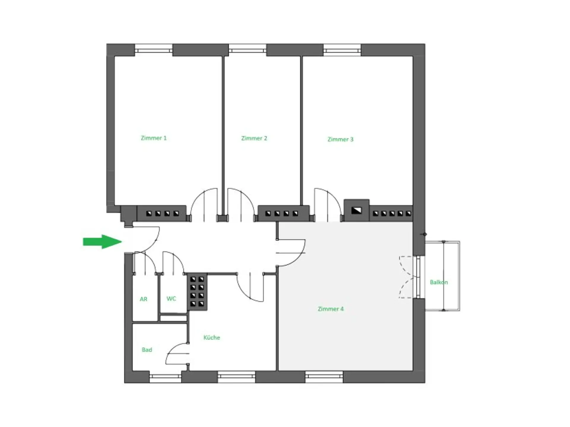 * 4 Zimmer: Durch den modernen Grundriss sind 3 der 4 Zimmer separat zugänglich, was vielfältige Nutzungsmöglichkeiten bietet – ideal als Wohnzimmer, Schlafzimmer, Kinderzimmer, Arbeitszimmer oder Hobbyraum.