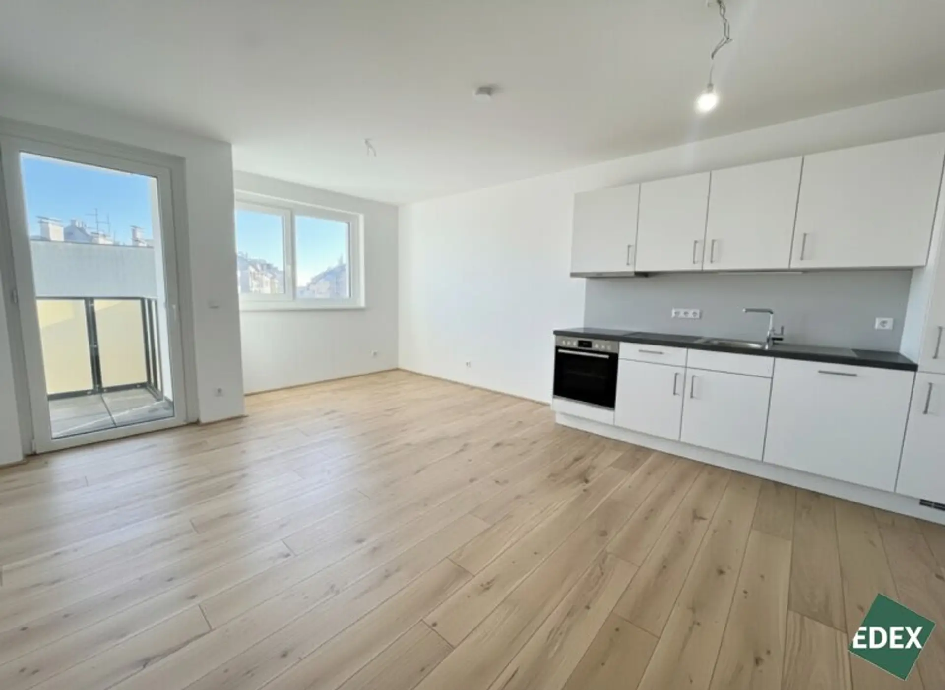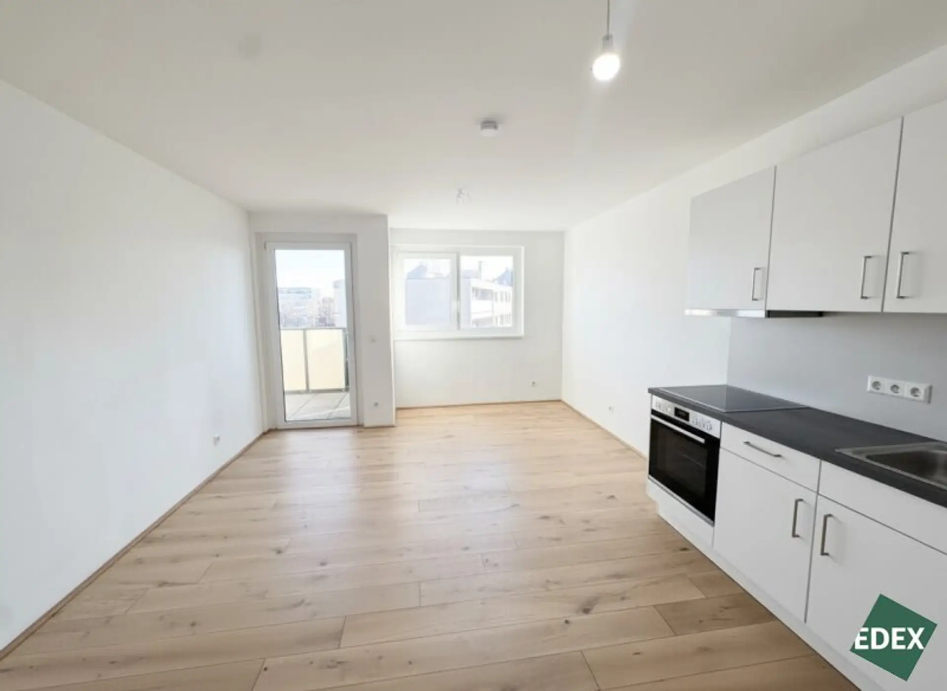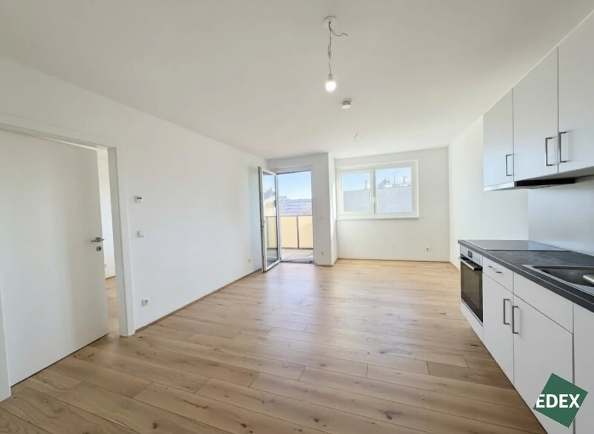 Zur Vermietung gelangt eine schöne 2-Zimmer-Wohnung in urbaner Atmosphäre. Die lichtdurchflutete Wohnung liegt straßenseitig im 4.Obergeschoß und verfügt über einen Vorraum, ein modernes Badezimmer, einen Abstellraum mit Waschmaschinenanschluss, ein separates WC, eine Wohnküche mit einer modernen, offenen Küche, ein Schlafzimmer, sowie eine Balkon. Der Außenbereich ist über das Wohnzimmer und das Schlafzimmer begehbar. Die Fenster sind mit einem außenliegenden Sonnenschutz versehen. Die Wohnräume sind mit hochwertigen Parkettböden und die Nassräume sind mit eleganten Fliesen ausgestattet. Weiters verfügt die Wohnung über ein Kellerabteil. Im Haus befinden sich Kinderwagen- und Fahrradabstellräume, Paketboxen sowie eine Tiefgarage. Die Wohnung steht ab sofort zur Verfügung und wird auf 3 Jahre befristet vermietet.