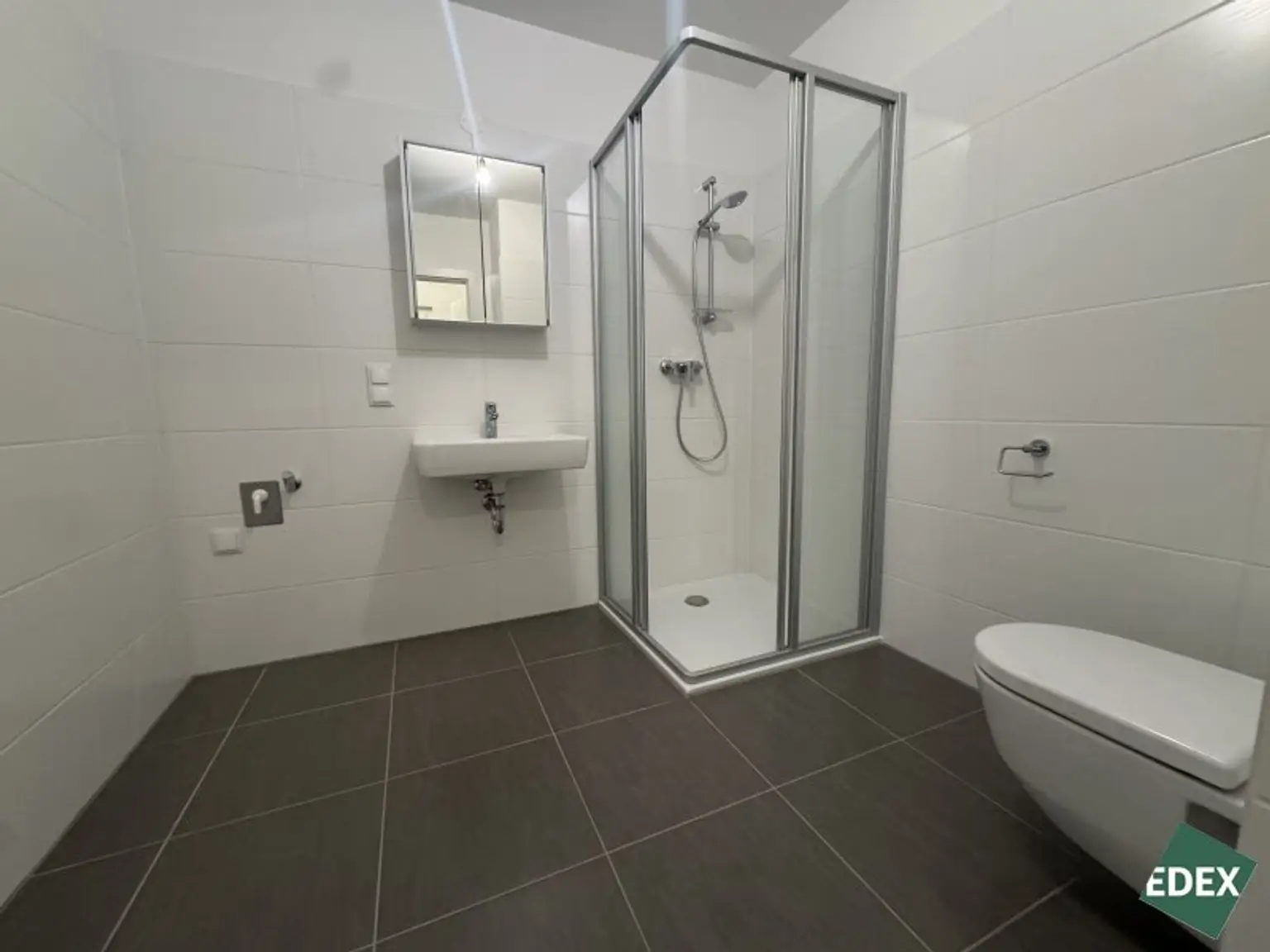 Zur Vermietung gelangt eine 2-Zimmer Wohnung in urbaner Atmosphäre. Die helle Wohnung verfügt über einen Vorraum, ein modernes Badezimmer mit Dusche und Waschmaschinenanschluss und ein WC, einen großzügigen Wohnbereich mit einer modernen, offenen Küche, ein großzügiges Schlafzimmer, sowie über einen Balkon und einen Abstellraum. Die 3-fach verglasten Fenster sind mit einer elektronischen Außenbeschattung ausgestattet. Die Wohnräume sind mit schönem Parkettboden ausgestattet und die Nassräume mit Fliesen verlegt. Die moderne Wohnhausanlage verfügt über zahlreiche Annehmlichkeiten wie Fahrrad- und Kinderwagenabstellräume, Kellerabteile sowie eine Tiefgarage