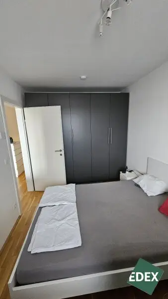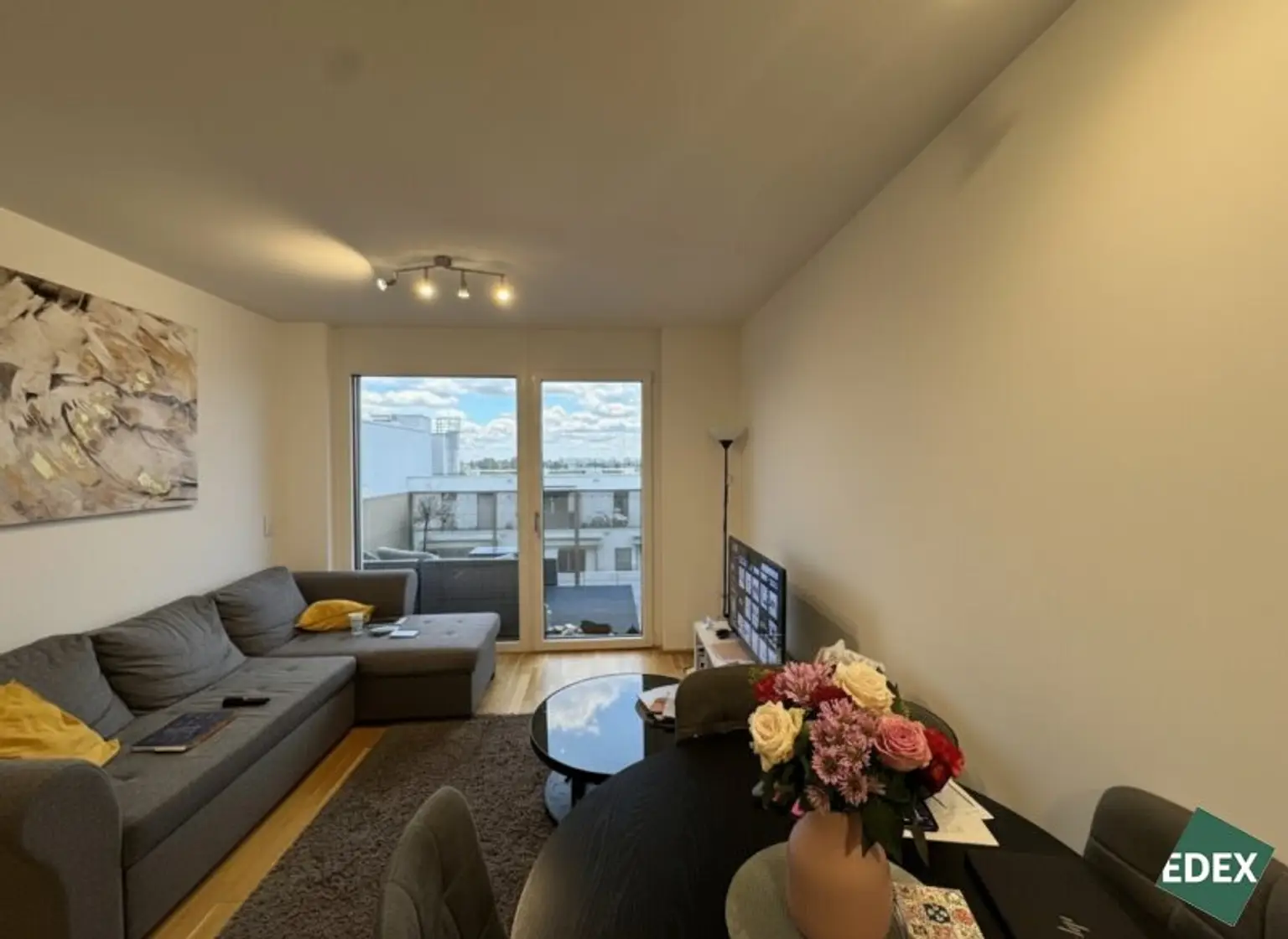 Zur Vermietung gelangt eine 2-Zimmer Wohnung in urbaner Atmosphäre. Die helle Wohnung verfügt über einen Vorraum, ein modernes Badezimmer mit Dusche und Waschmaschinenanschluss und ein WC, einen großzügigen Wohnbereich mit einer modernen, offenen Küche, ein großzügiges Schlafzimmer, sowie über einen Balkon und einen Abstellraum. Die 3-fach verglasten Fenster sind mit einer elektronischen Außenbeschattung ausgestattet. Die Wohnräume sind mit schönem Parkettboden ausgestattet und die Nassräume mit Fliesen verlegt. Die moderne Wohnhausanlage verfügt über zahlreiche Annehmlichkeiten wie Fahrrad- und Kinderwagenabstellräume, Kellerabteile sowie eine Tiefgarage.