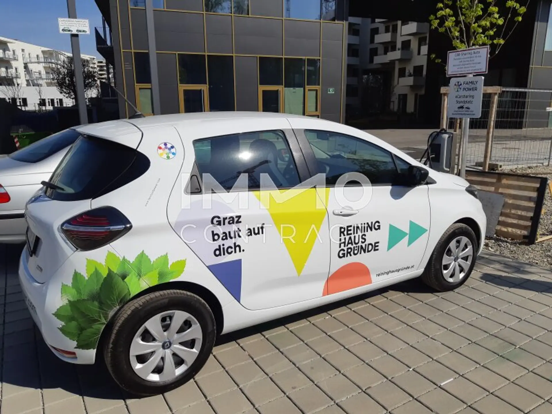 Ein zukunftsweisendes Mobilitätskonzept baut den öffentlichen Verkehr aus und investiert in die E-Mobilität mitE-Car-Sharing direkt vor dem Gebäude.