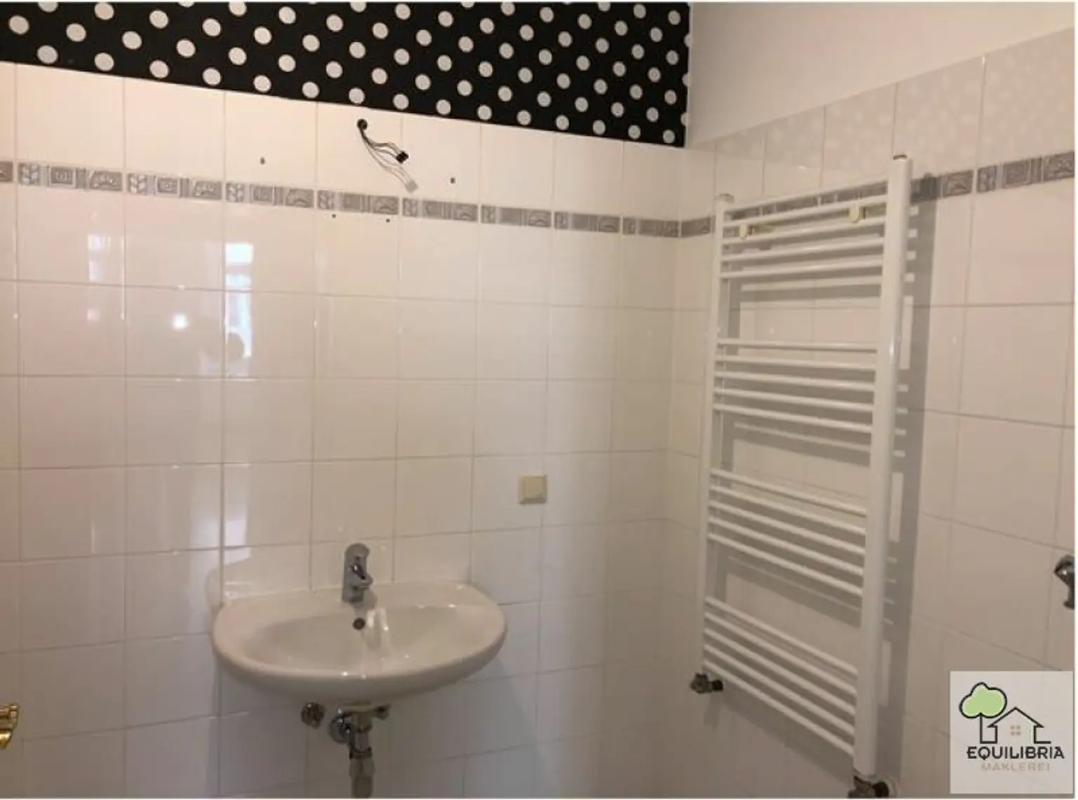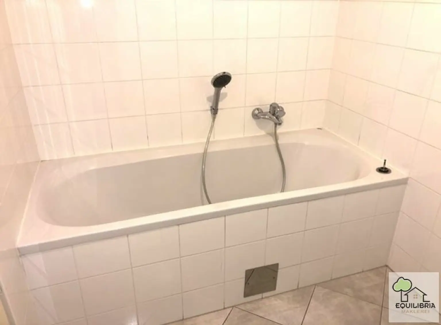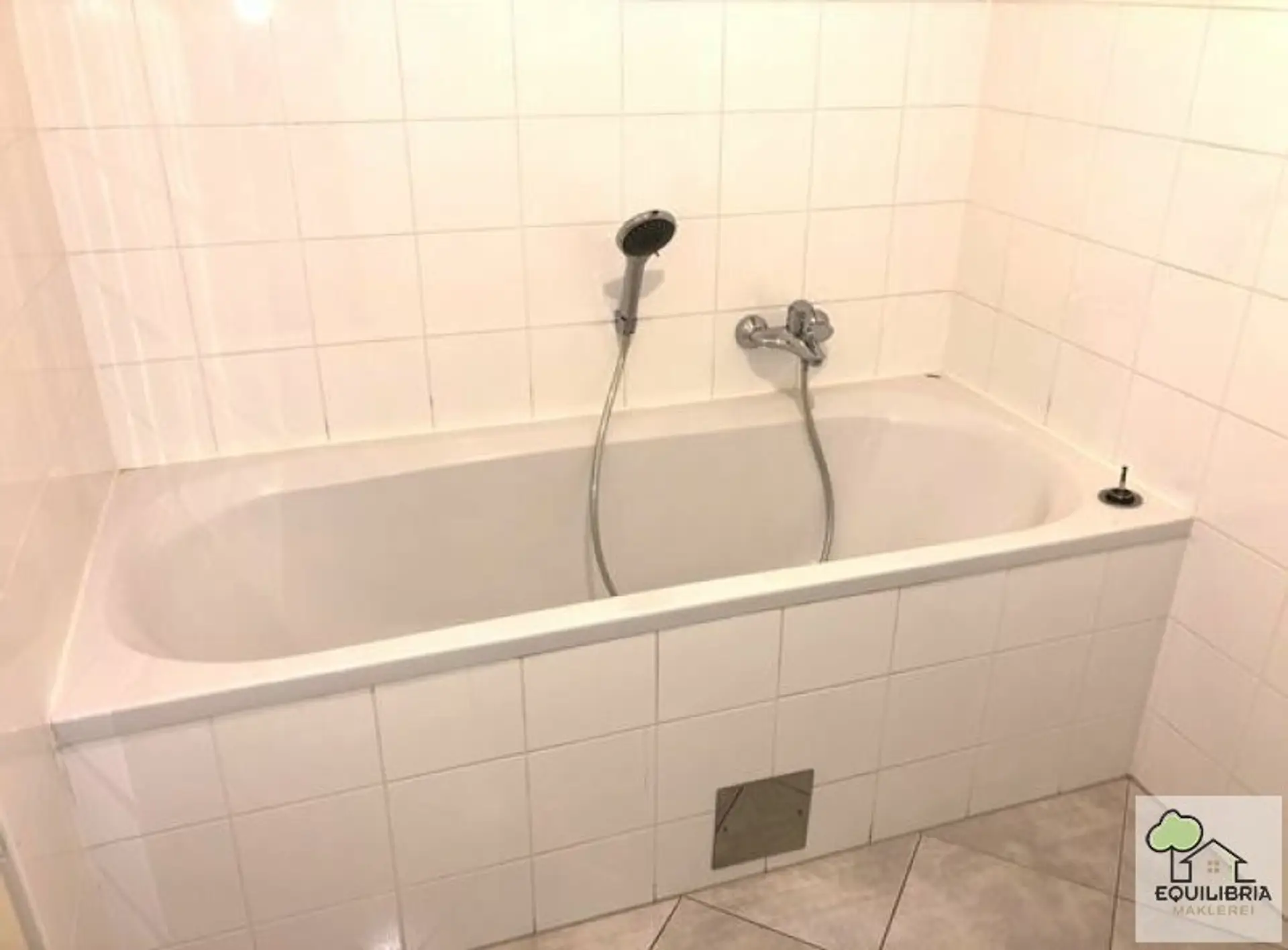 Über den L-förmigen Vorraum erschließt sich im Anschluss das separate WC und das separate Badezimmer mit Wanne, Waschbecken, Handtuchheizkörper und Waschmaschinenanschluss.