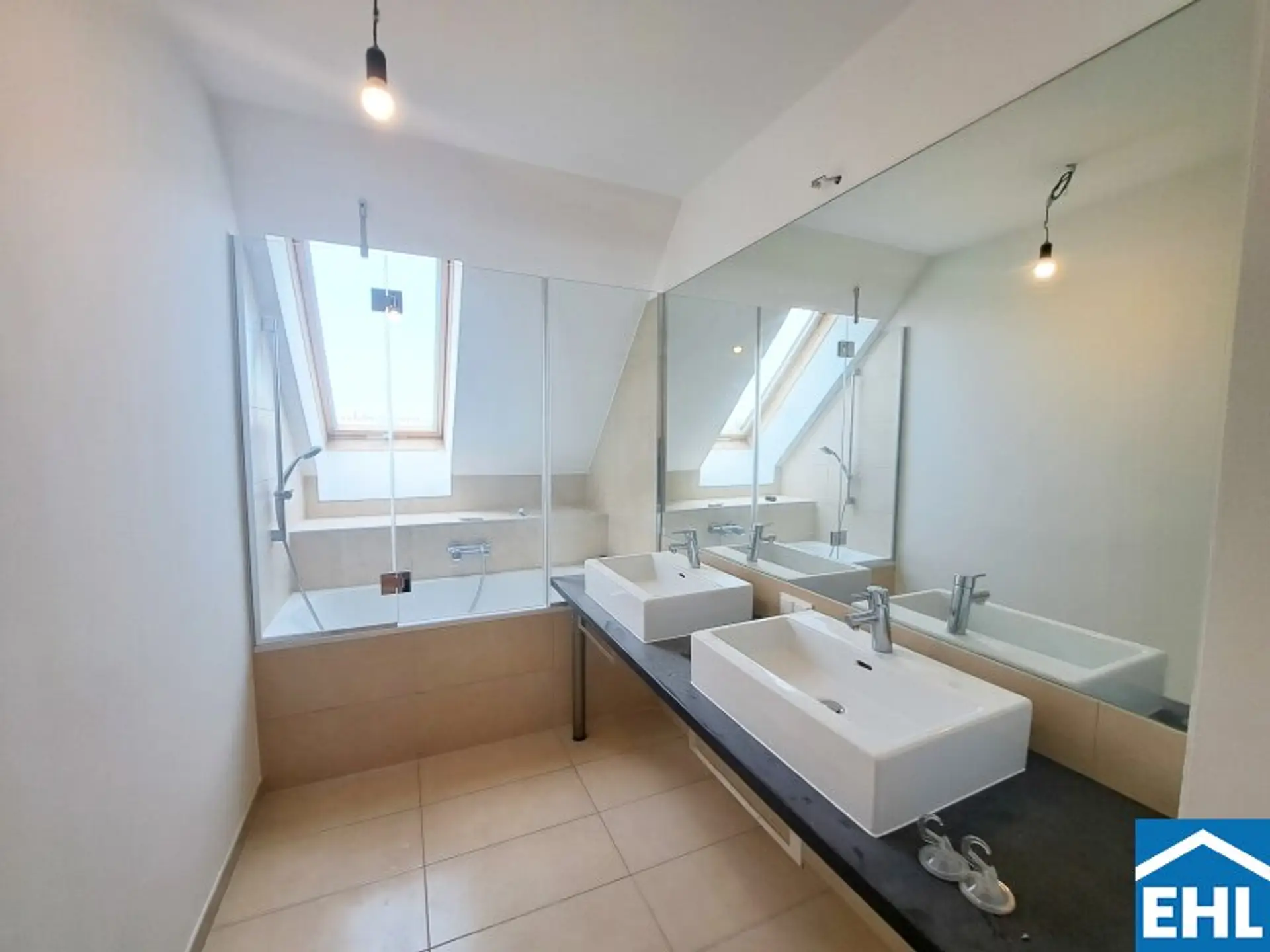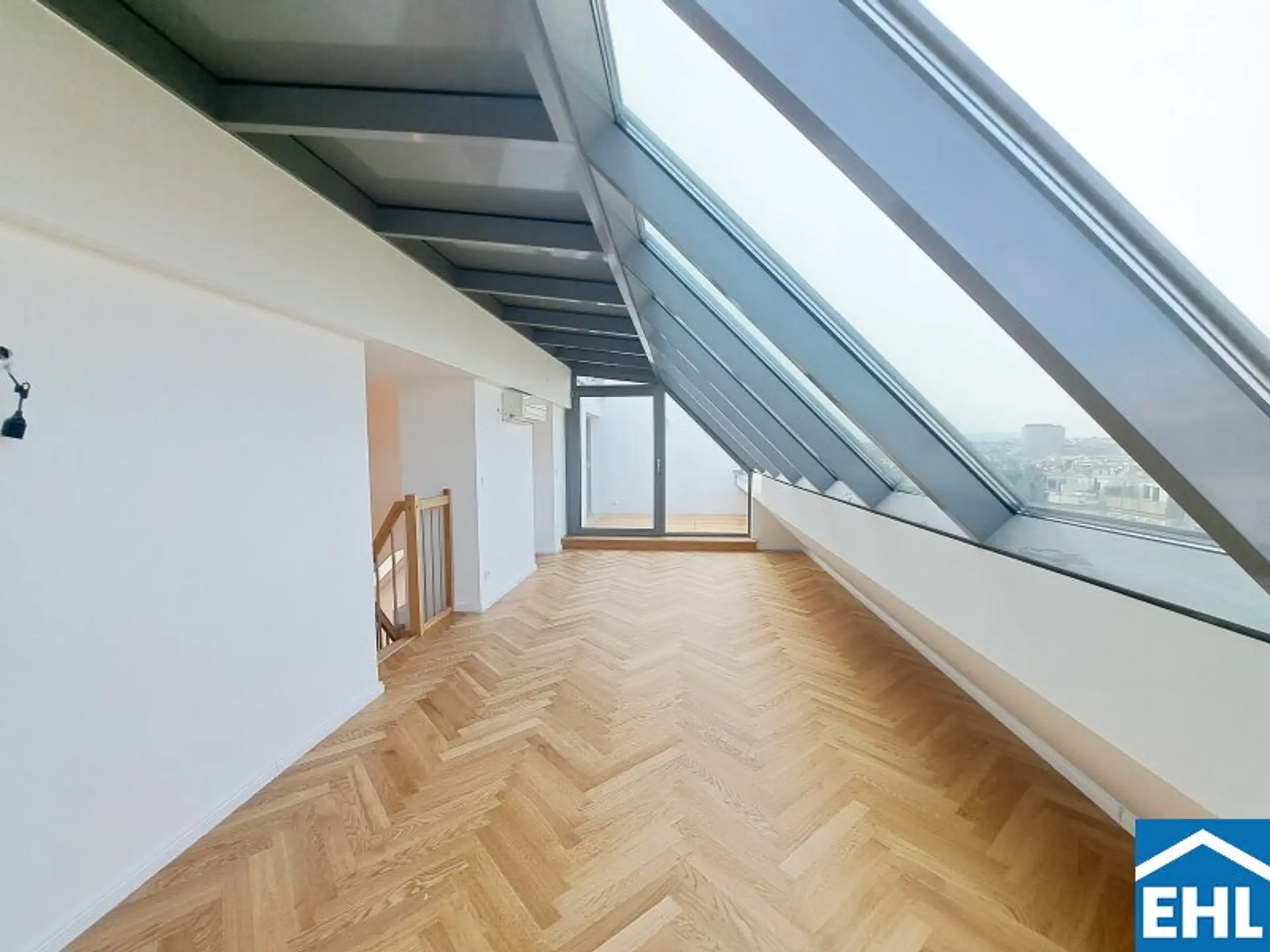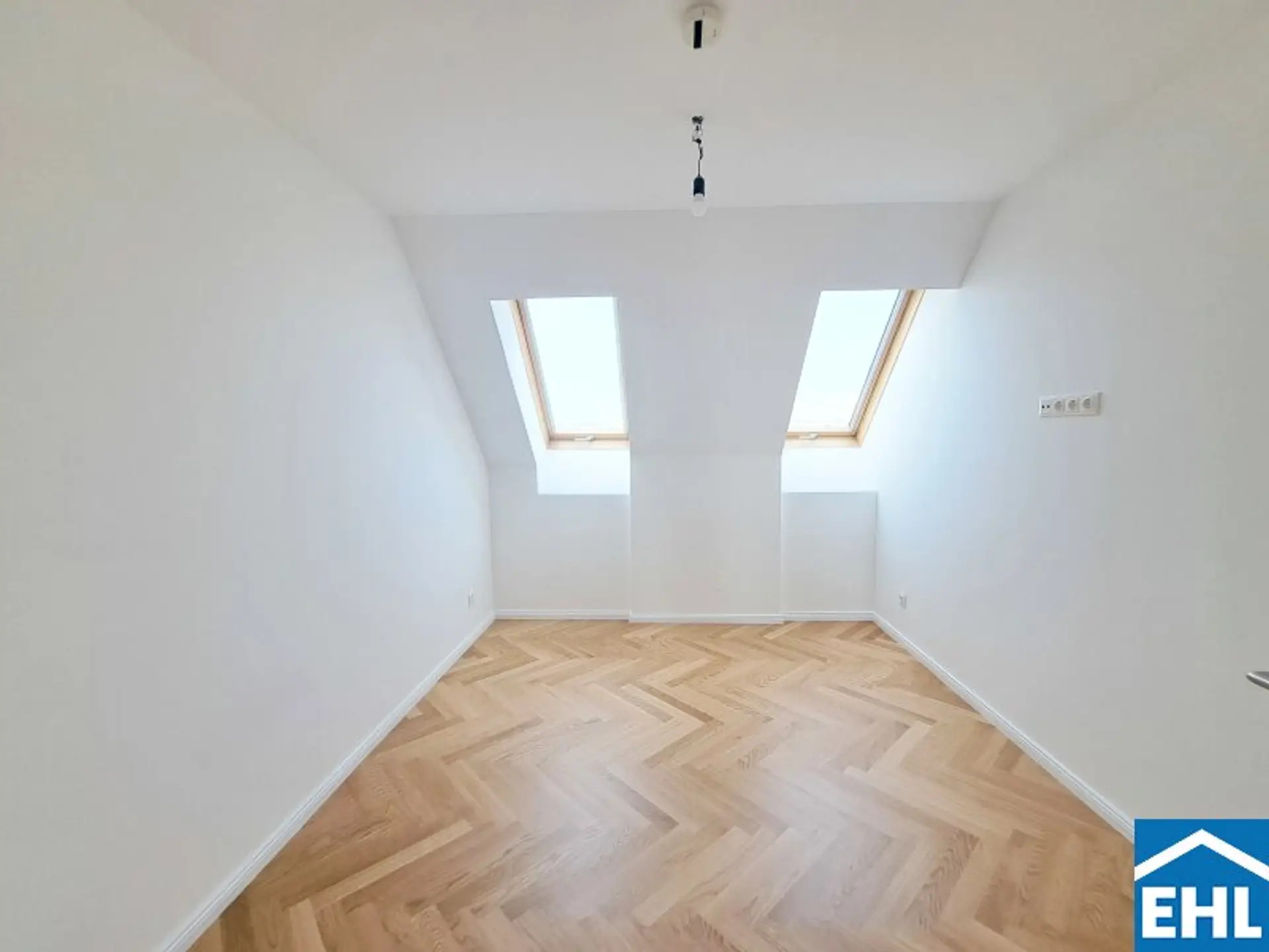 Die großzügige Fläche von knapp 106 m² teilt sich in zwei westseitig ausgerichtete Schlafzimmer, ein großzügiges Wohn- und Esszimmer mit viel Morgensonne, eine separate Küche, ein Badezimmer mit Tageslicht, eine separate Toilette sowie einen Vorraum. In der oberen Etage findet sich weiters eine Galerie mit Zugang zur privaten Terrasse.