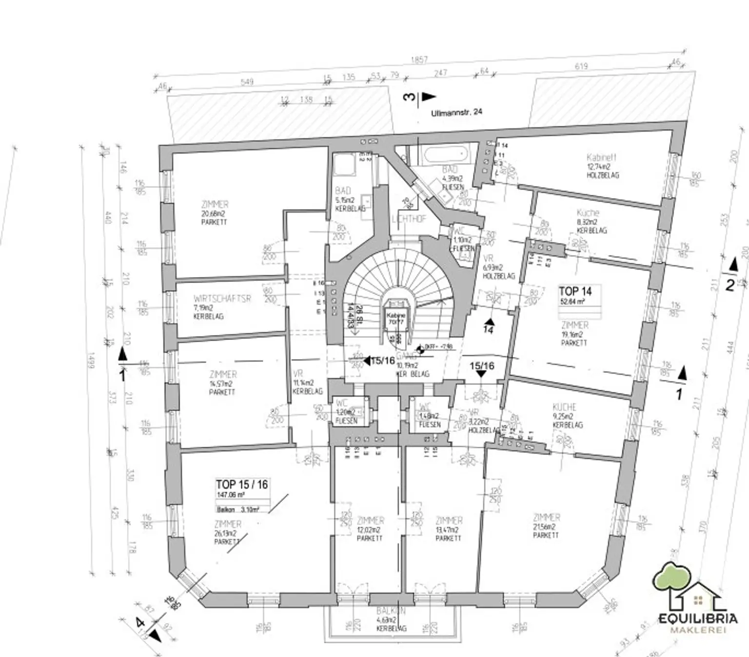 Die Vermietung erfolgt befristet wobei die Befristungslänge in Abstimmung mit den Mietern getroffen wird. Das Objekt im Ausmaß von 147,06 m² (plus 3 m2 Balkon) befindet sich im 2. Liftstock eines Gründerzeithauses.