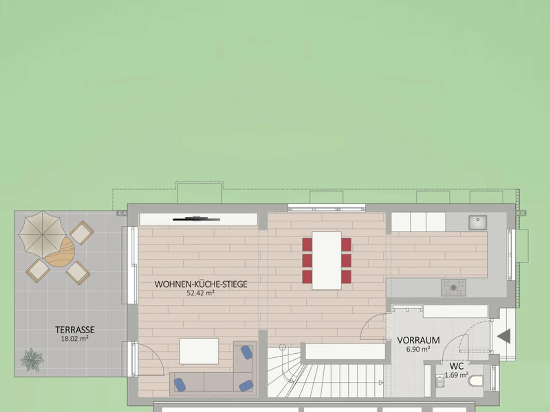 - Hochwertige Markenausstattung (Innenstiege vom Tischler, Feinsteinzeug-Fliesen, Holz-Alu-Fenster mit 3-fach Isolierverglasung, uvm.)