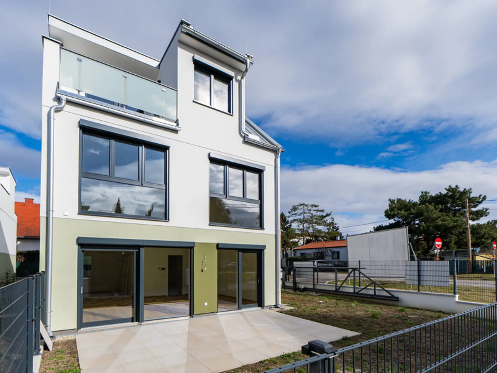 Hier in der Arminenstraße erwartet Sie das Beste aus den beiden Welten "Stadt und Natur" und eine absolute Rarität hier im Grätzel von Strandcafé und Bootshaus: Vier exklusive Einzelhäuser auf Eigengrund bieten Ihnen und Ihrer Familie – nur 200 Meter von der Alten Donau entfernt – geräumige Nettowohnflächen von [WNF], aufgeteilt auf [Zi] Zimmer, in moderner Architektur und mit ausgeklügelten Grundrissen. Bei der Ausstattung der Häuser haben wir wirklich an alles gedacht: von der Photovoltaikanlage samt black-outfähigem Pufferspeicher und Wallbox, über kleine und feine Annehmlichkeiten wie Wäscheabwurfschacht, flächenbündige Innentüren und ohnehin nur die absolut höchste Ausstattungsqualität mit regionalen und internationalen Topmarken wie Villeroy & Boch, Axor von Philippe Starck und hansgrohe, Scheucher Echtholzparkett und viele weitere mehr. In Ihrem eigenen Garten mit Terrasse genießen Sie Ihr tägliches Leben wie im Urlaub – und das an 365 Tagen im Jahr. Die Grundstücksgrößen liegen bei [GSF]. Und auch in den Keller gehen Sie beschwingt und lachend, denn dort erwarten Sie über 50 m² an weiterer Fläche, die Sie z.B. für Ihre Hobbys, Fitness oder ganz besonders ruhiges Arbeiten im Home-Office nützen können. Auch hier haben wir Wert auf entsprechend hochwertige Bodenbeläge und viel Licht gelegt. Jeder Moment, den Sie in Ihrem neuen Zuhause verbringen, soll und wird Ihnen Freude machen. Nehmen Sie uns beim Wort: Bei unseren Häusern stimmt einfach alles – wir planen mit architektonischer Sorgfalt und setzen die Projekte mit Liebe zum Detail um. Selbst die Zäune und Außenanlagen samt eigenen Parkplätzen sind bereits im Kaufpreis inkludiert!