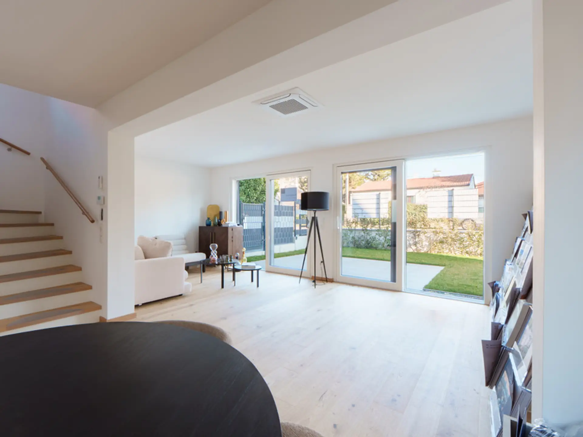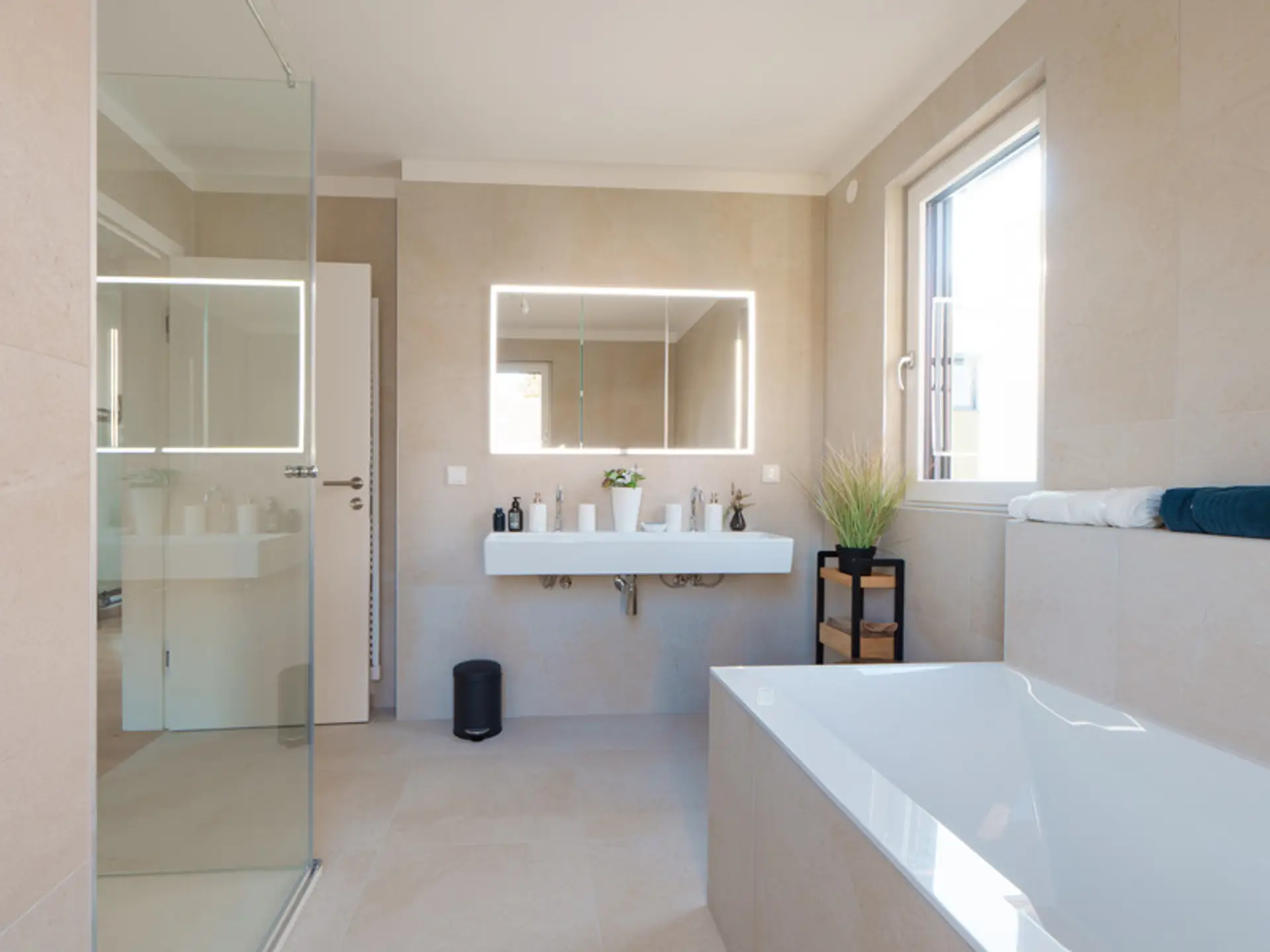 - Hochwertige Markenausstattung (Echtholzparkett, Innenstiege vom Tischler, Feinsteinzeug-Fliesen, Holz-Alu-Fenster mit 3-fach Isolierverglasung, uvm.)