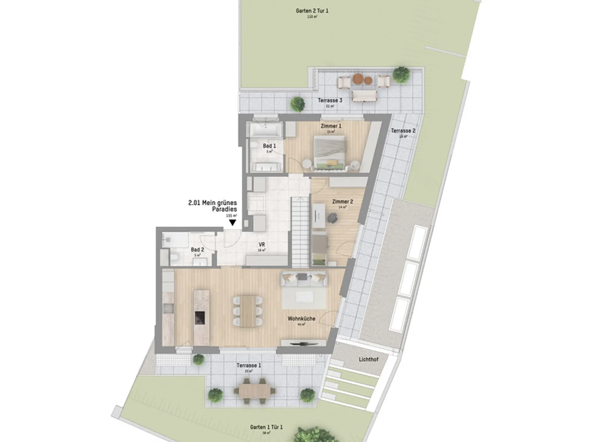 - Hochwertige Markenausstattung (Echtholzparkett, Feinsteinzeug-Fliesen, Holz-Alu-Fenster mit 3-fach Isolierverglasung, uvm.)