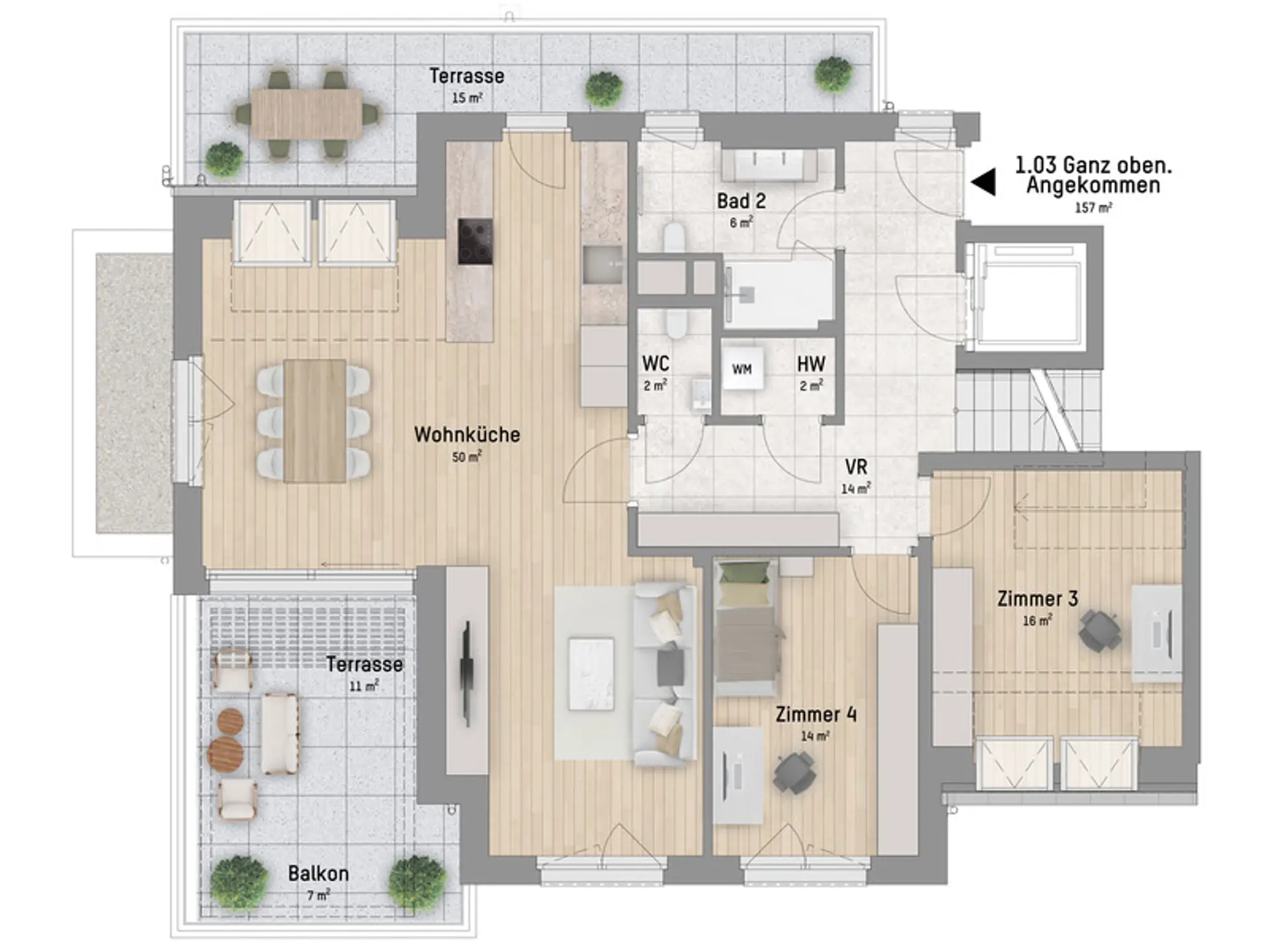 - Hochwertige Markenausstattung (Echtholzparkett, Feinsteinzeug-Fliesen, Holz-Alu-Fenster mit 3-fach Isolierverglasung, uvm.)