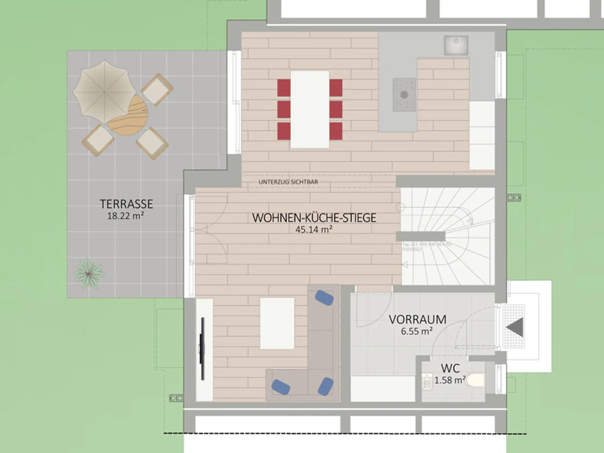 - Hochwertige Markenausstattung (Innenstiege vom Tischler, Feinsteinzeug-Fliesen, Holz-Alu-Fenster mit 3-fach Isolierverglasung, uvm.)