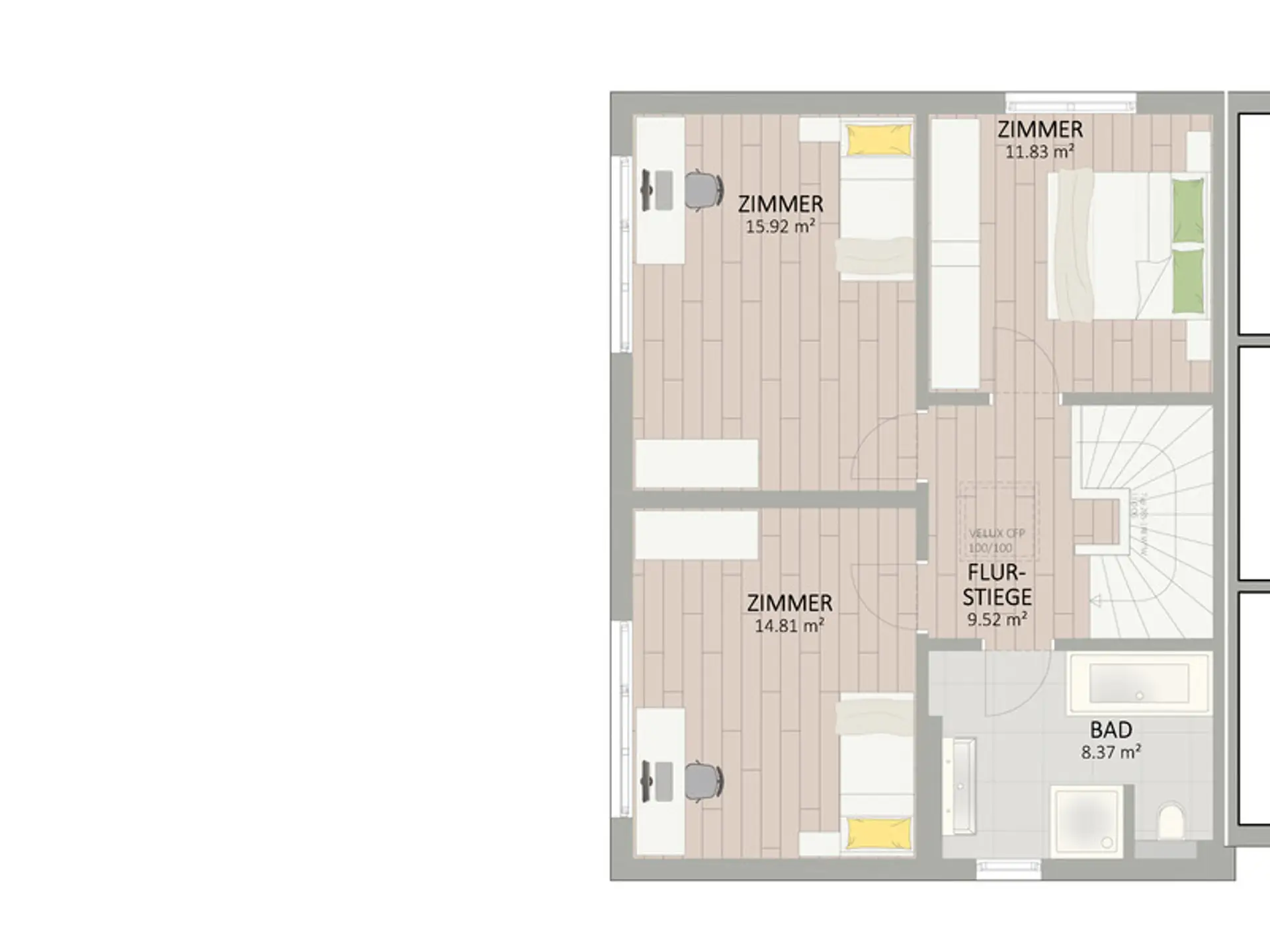 - Hochwertige Markenausstattung (Innenstiege vom Tischler, Feinsteinzeug-Fliesen, Holz-Alu-Fenster mit 3-fach Isolierverglasung, uvm.)