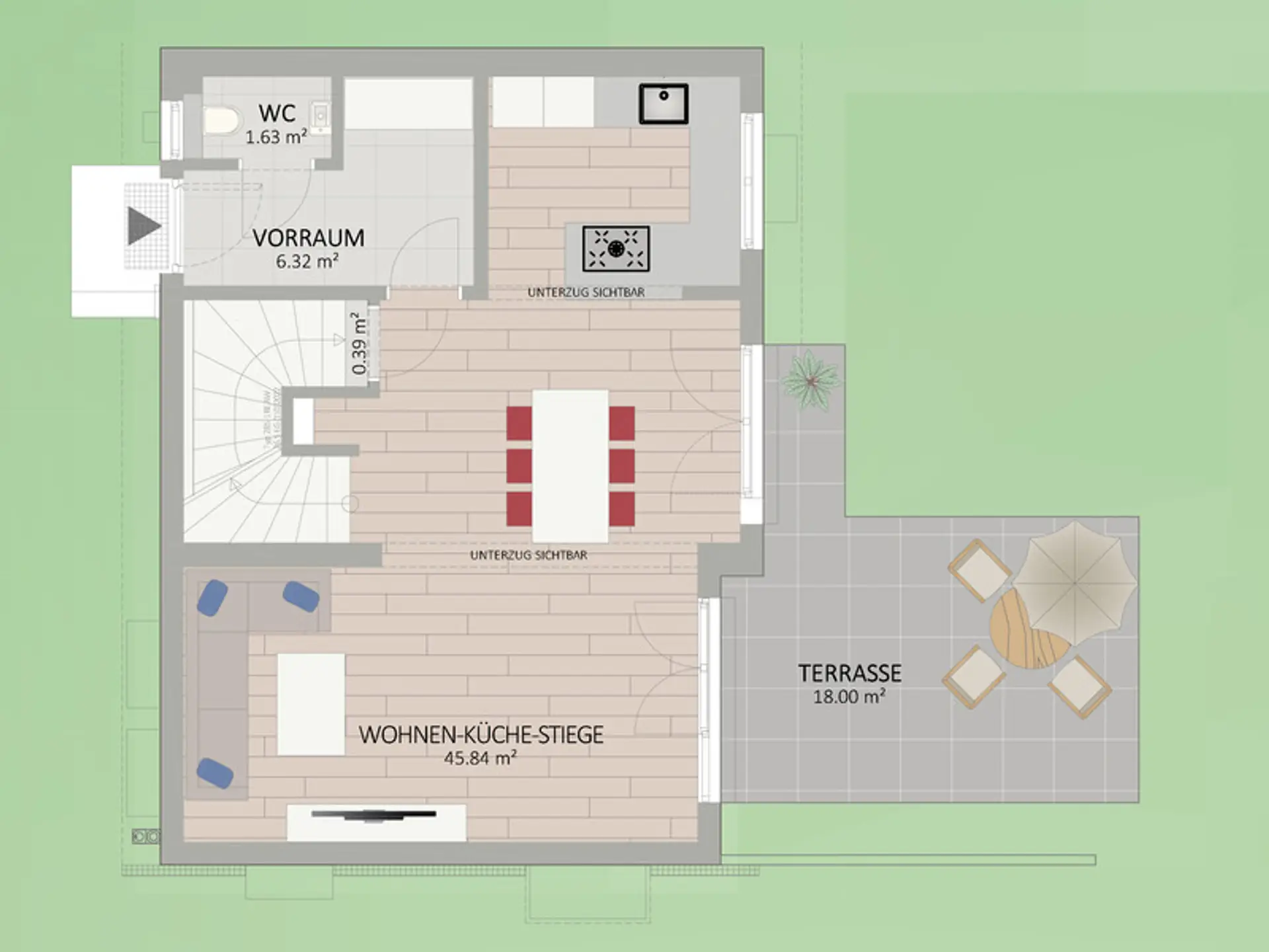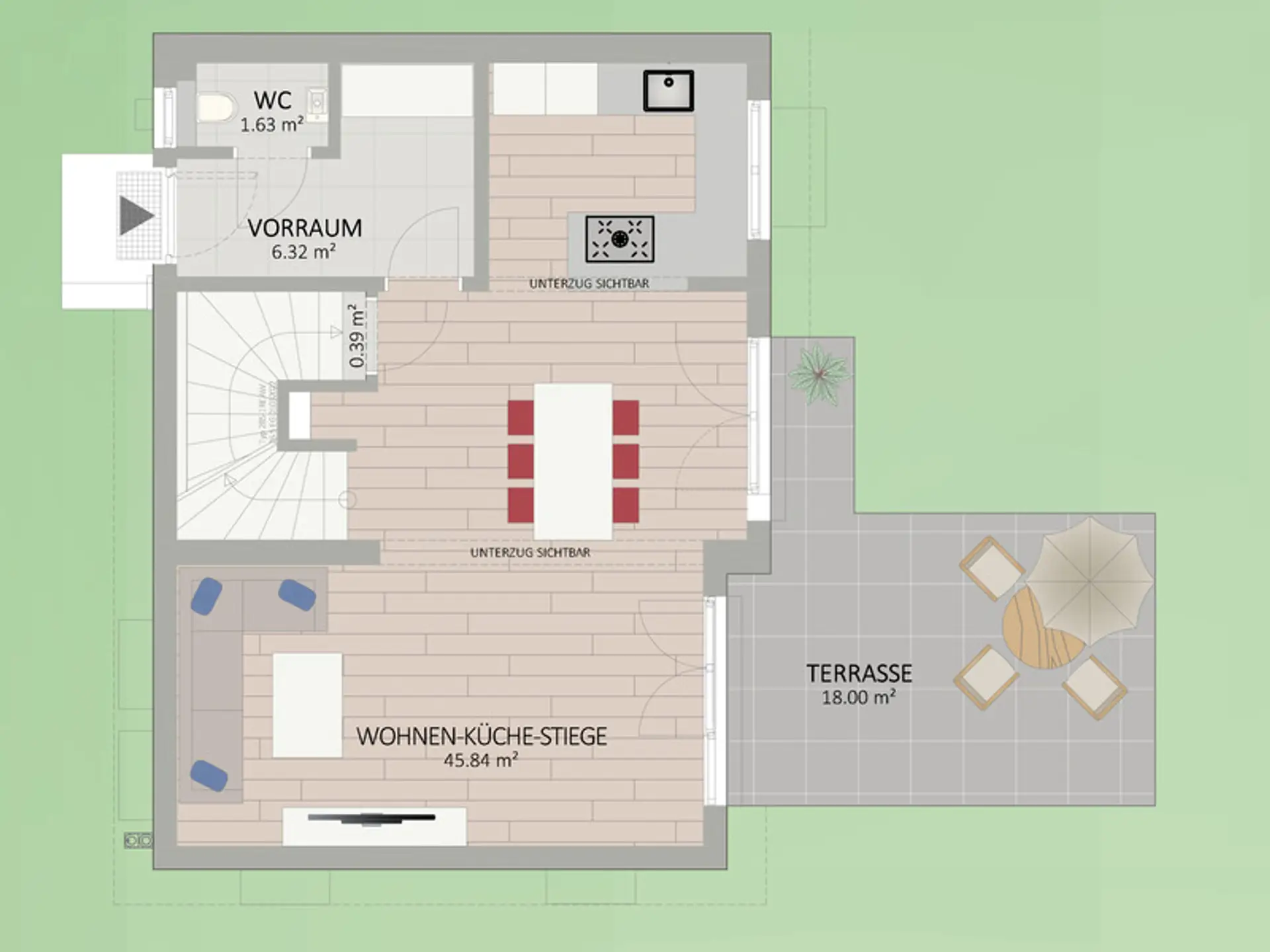- Hochwertige Markenausstattung (Innenstiege vom Tischler, Feinsteinzeug-Fliesen, Holz-Alu-Fenster mit 3-fach Isolierverglasung, uvm.)