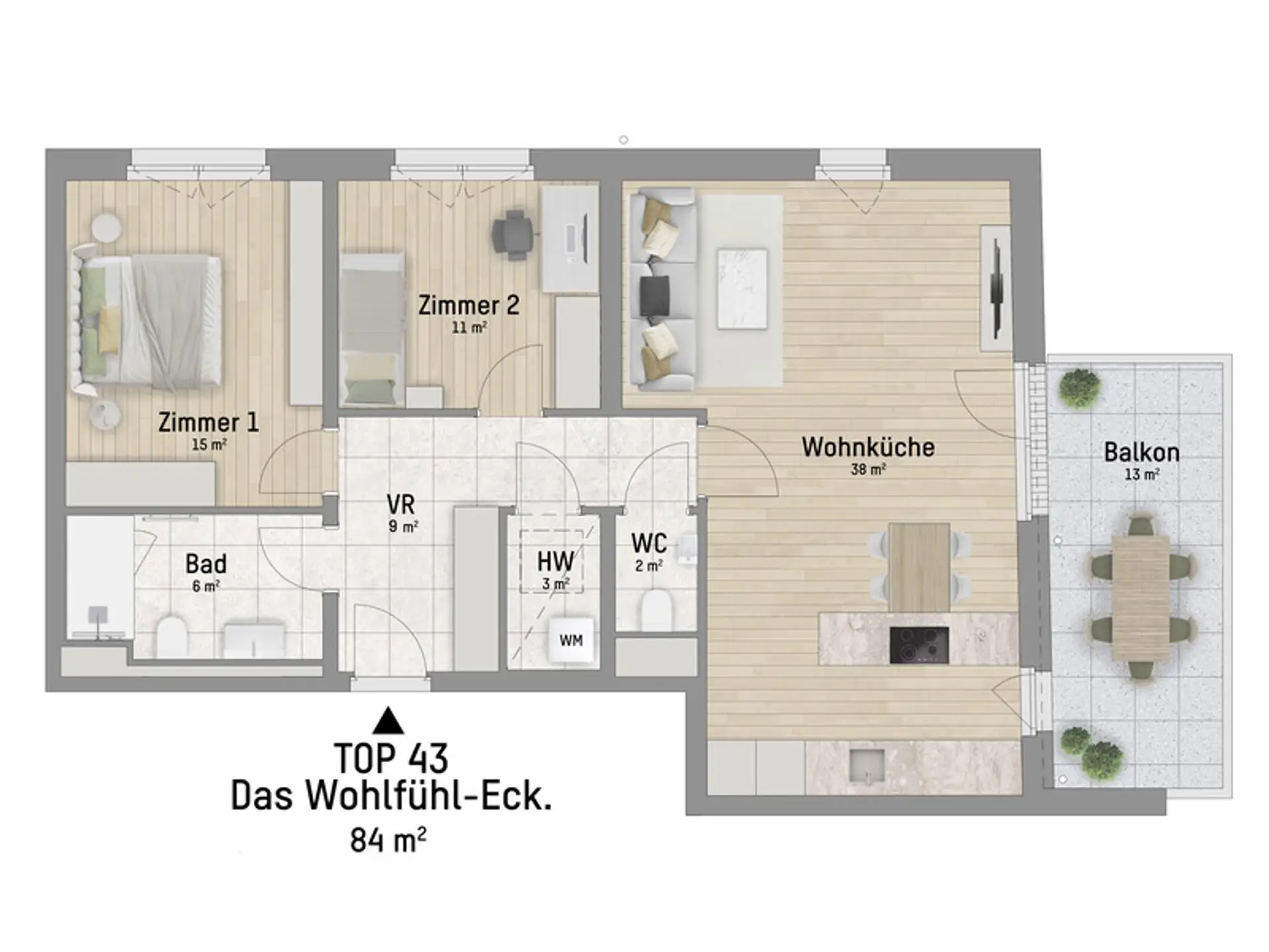 - Hochwertige Markenausstattung (Echtholzparkett, Feinsteinzeug-Fliesen, Holz-Alu-Fenster mit 3-fach Isolierverglasung, uvm.)