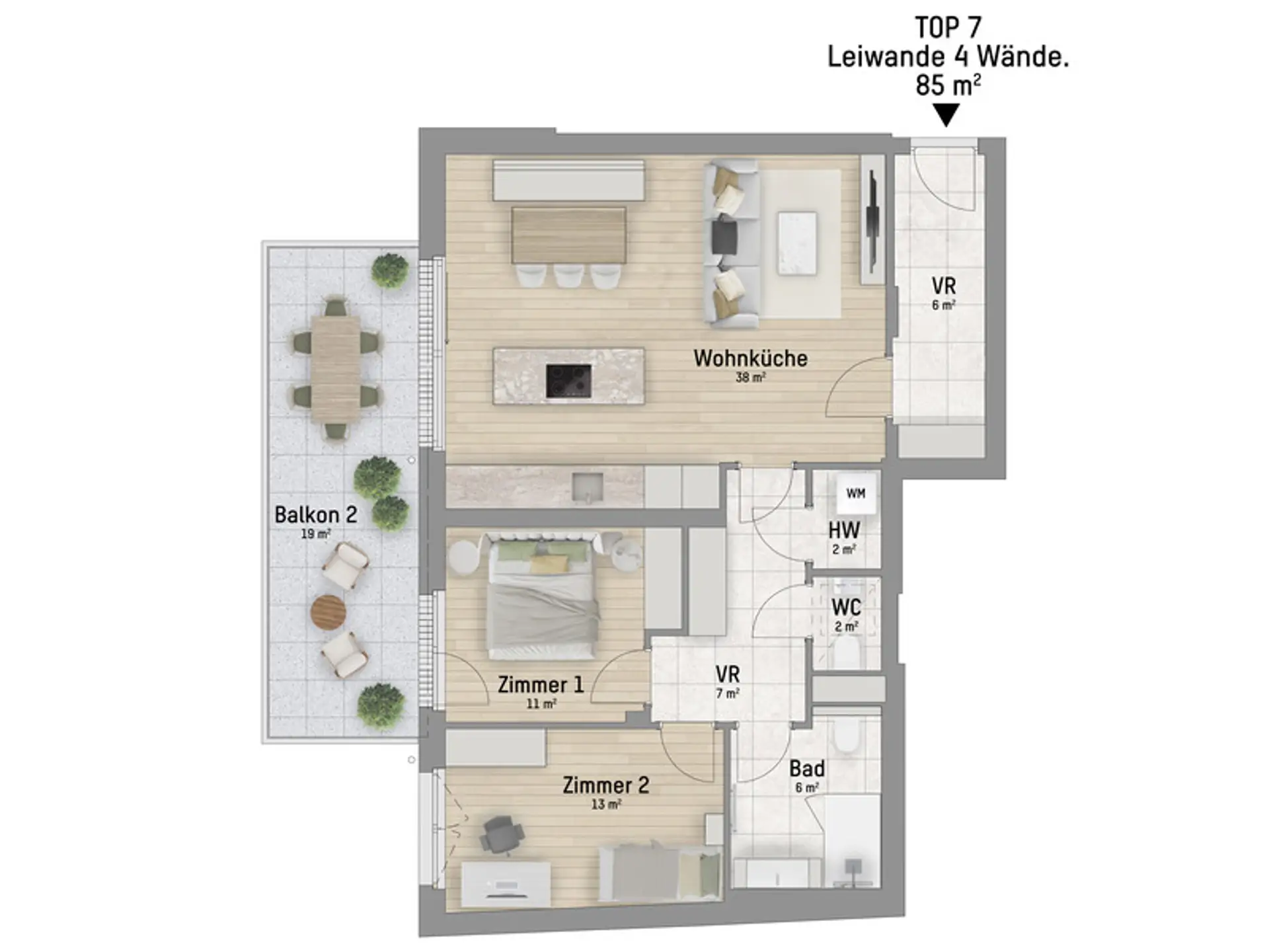 - Hochwertige Markenausstattung (Echtholzparkett, Feinsteinzeug-Fliesen, Holz-Alu-Fenster mit 3-fach Isolierverglasung, uvm.)