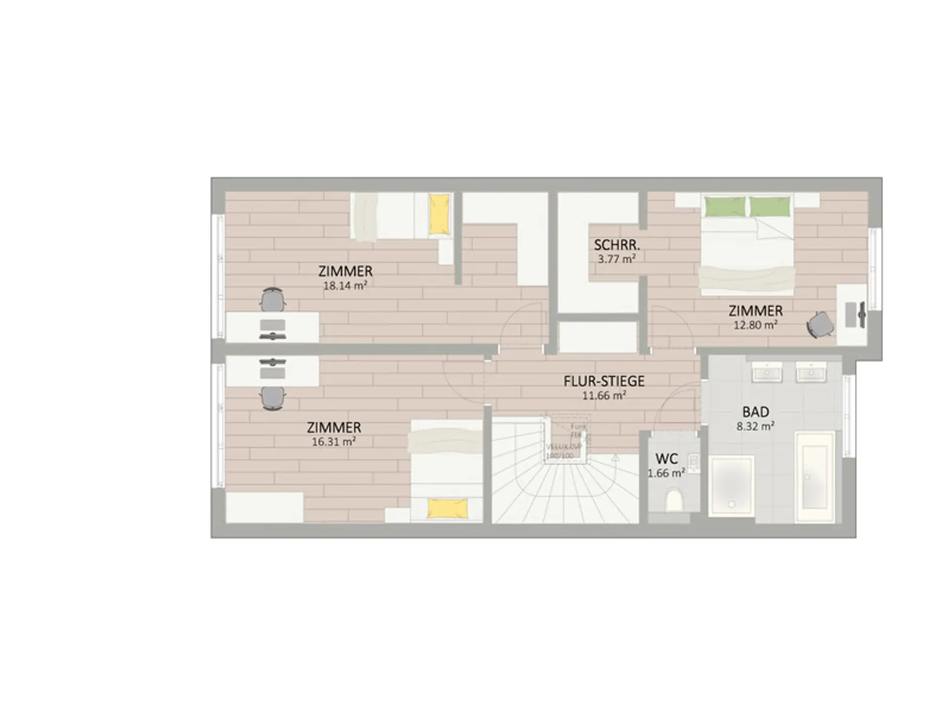 - Hochwertige Markenausstattung (Innenstiege vom Tischler, Feinsteinzeug-Fliesen, Holz-Alu-Fenster mit 3-fach Isolierverglasung, uvm.)