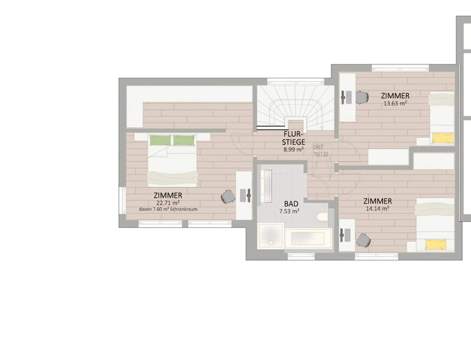 - Hochwertige Markenausstattung (Echtholzparkett, Innenstiege vom Tischler, Feinsteinzeug-Fliesen, Holz-Alu-Fenster mit 3-fach Isolierverglasung, uvm.)