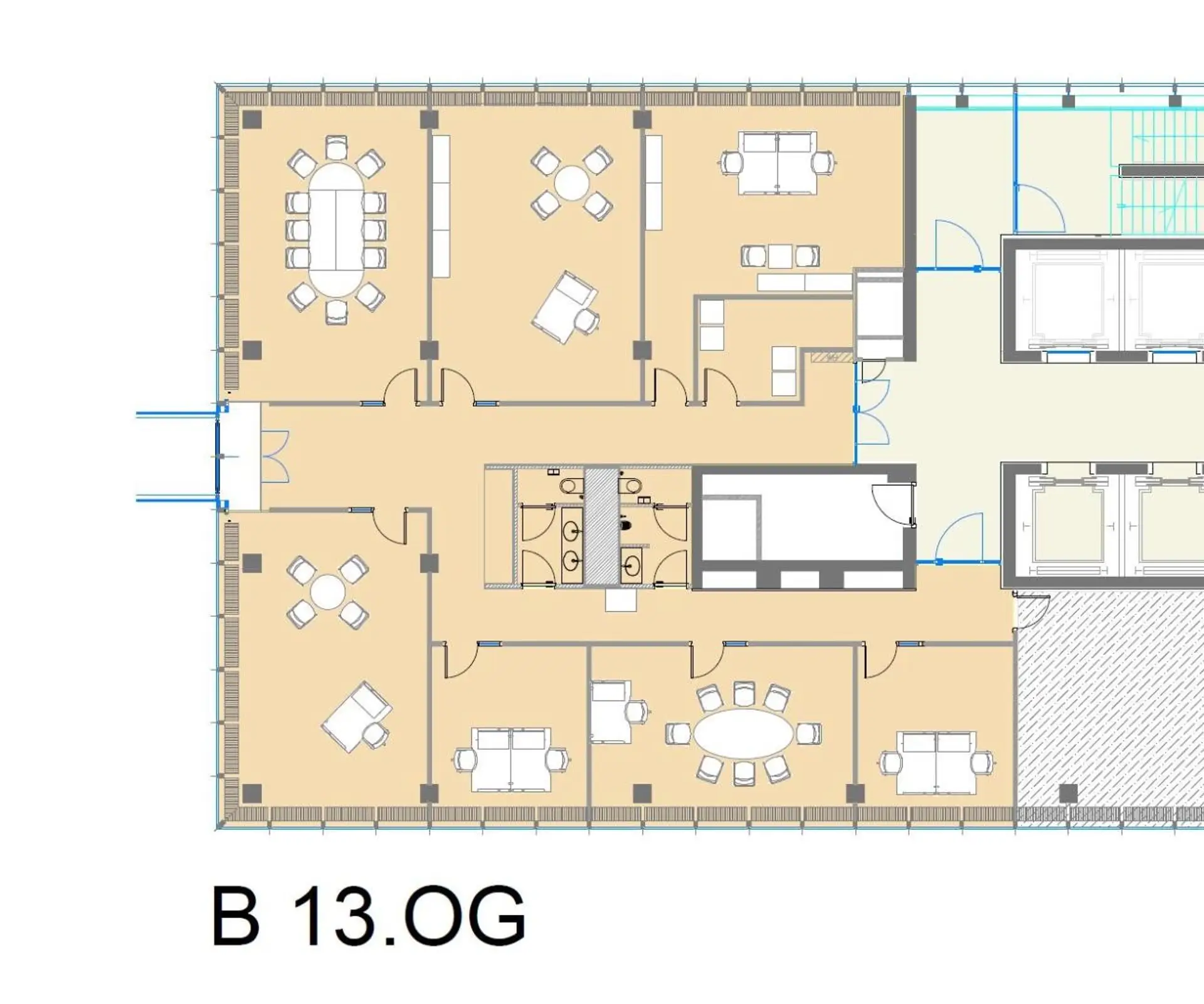 • Working spaces inkl. USB- bzw. Stromanschlüsse und iPad Halterungen