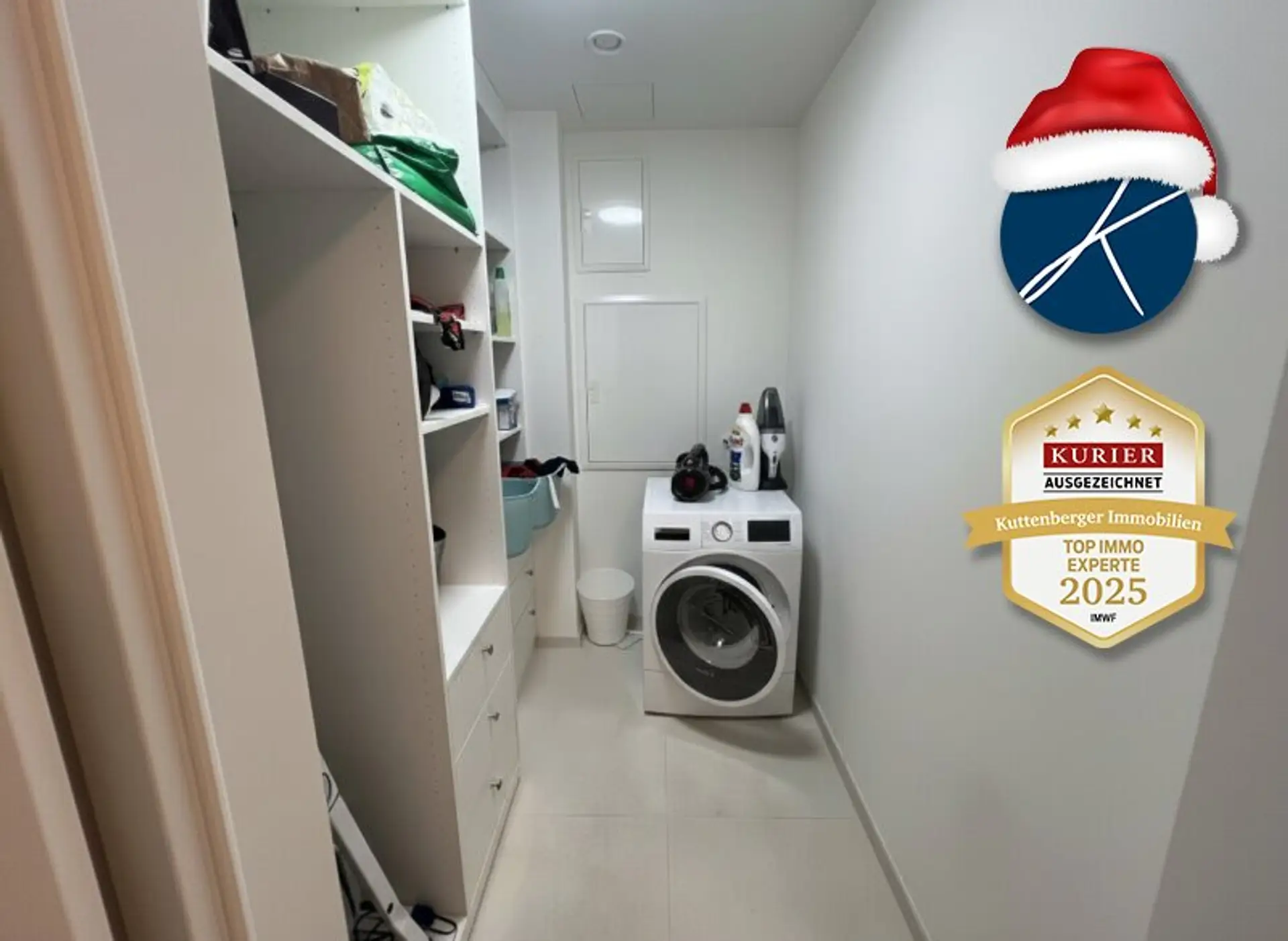Im geräumigen Abstellraum befindet sich auch die Waschmaschine.