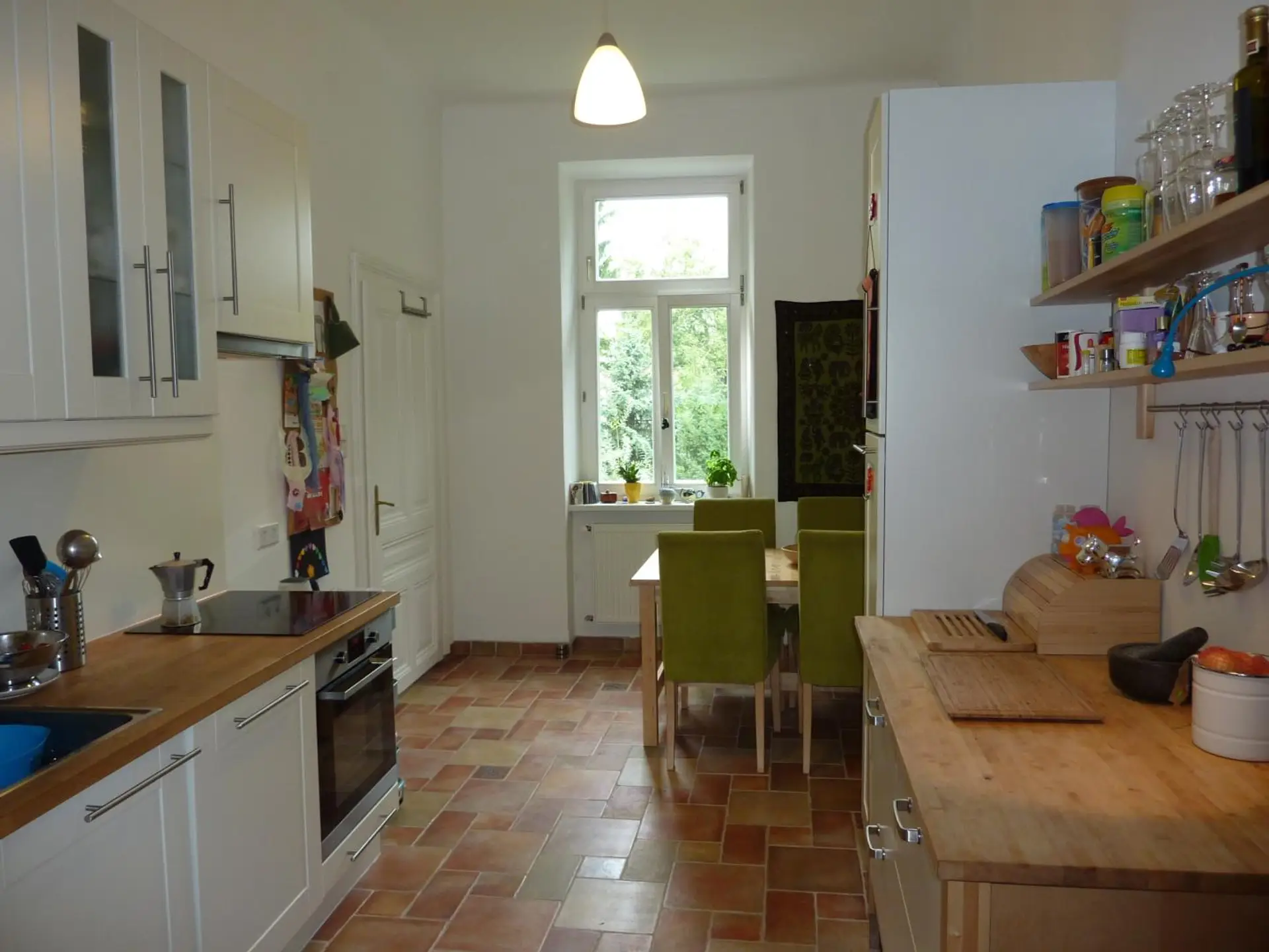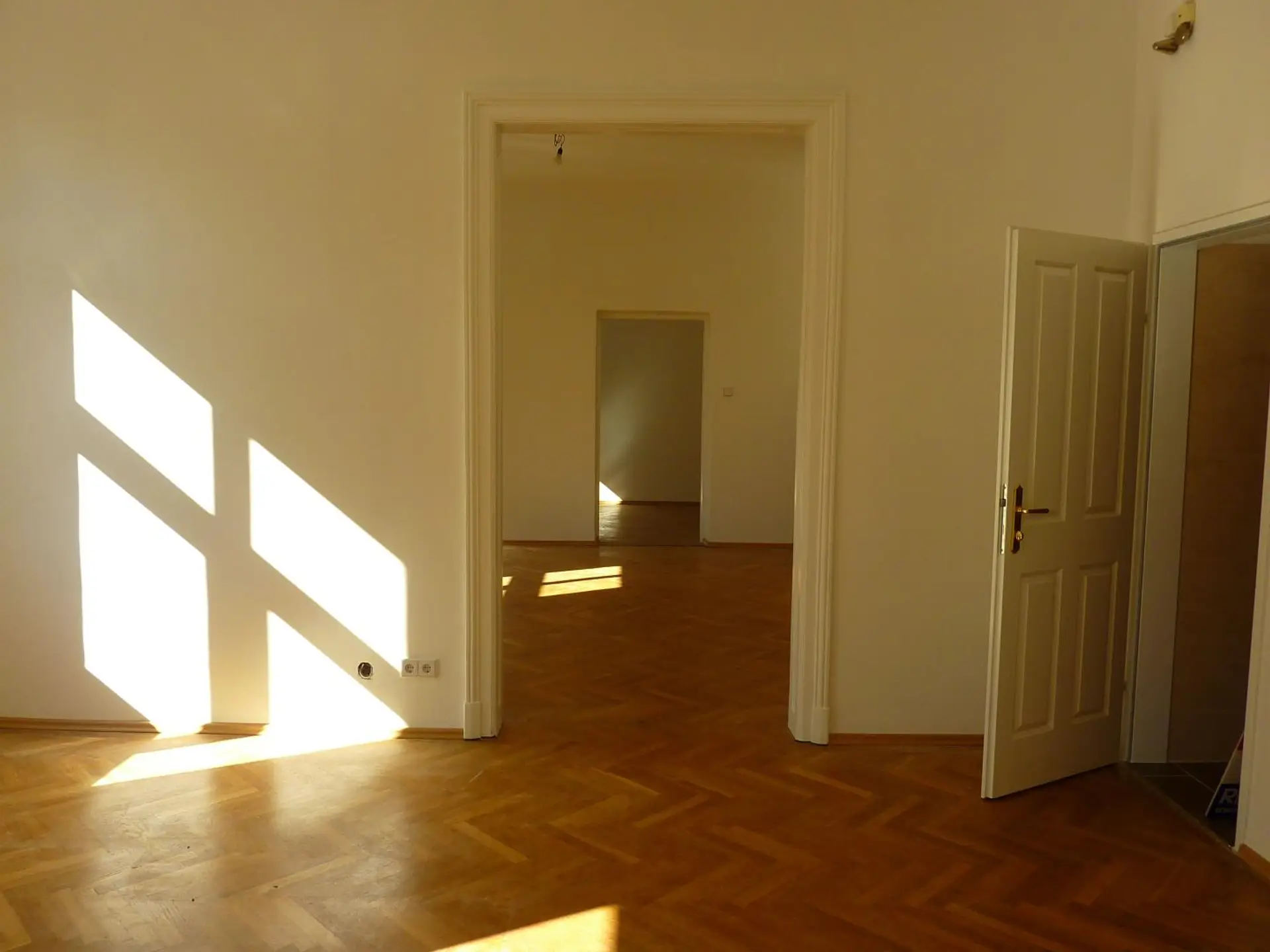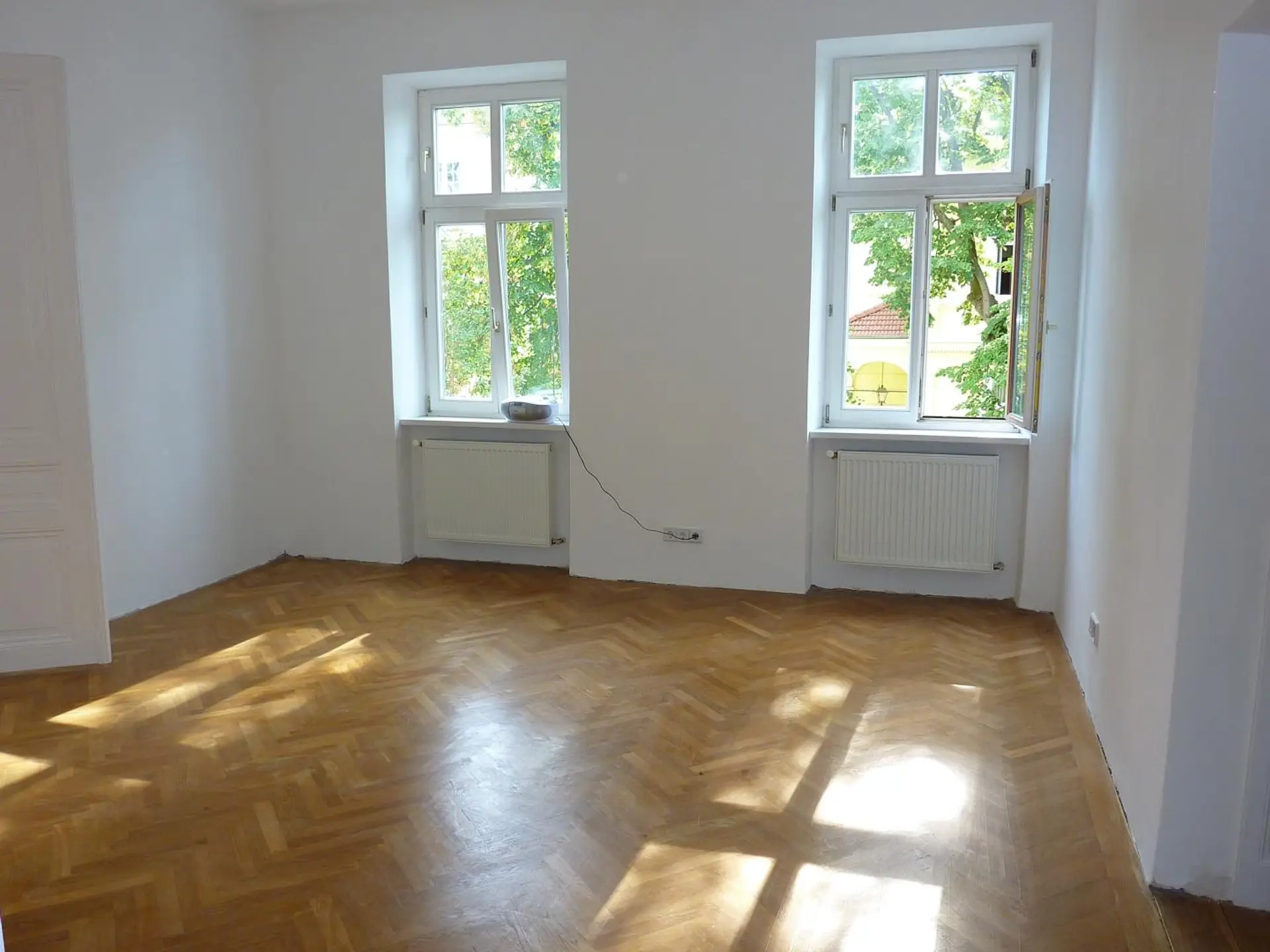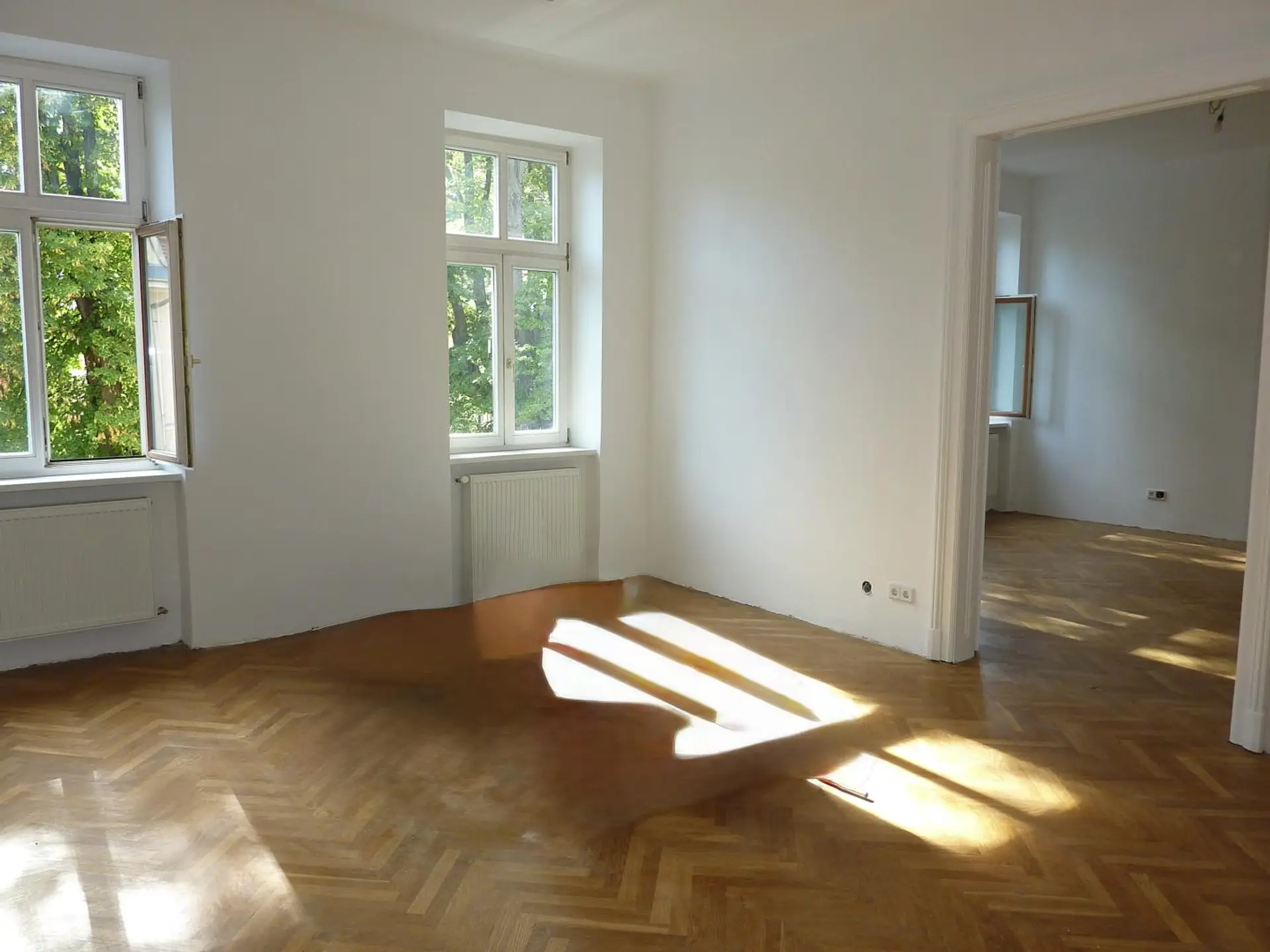 Die Immobilie präsentiert sich in einem sehr gepflegten Zustand und überzeugt durch ihren charaktervollen Altbau-Flair mit hohen Räumen, stilvollen Flügeltüren und Fischgrätparkett.
