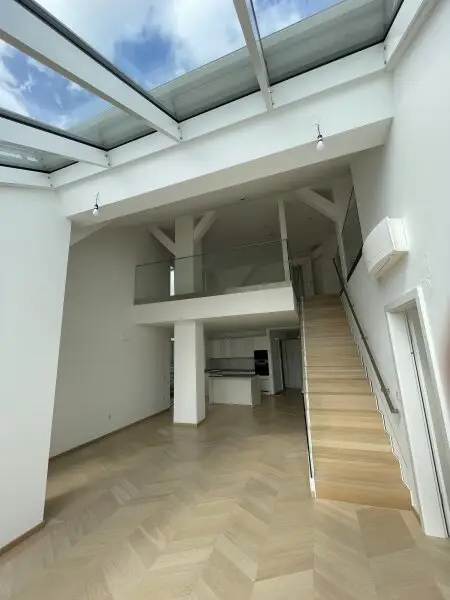 Sie liegt als Maisonette im Dachgeschoß eines altehrwürdigen Wohnhauses in Top-Lage am Rudolfsplatz, nähe Schwedenplatz.