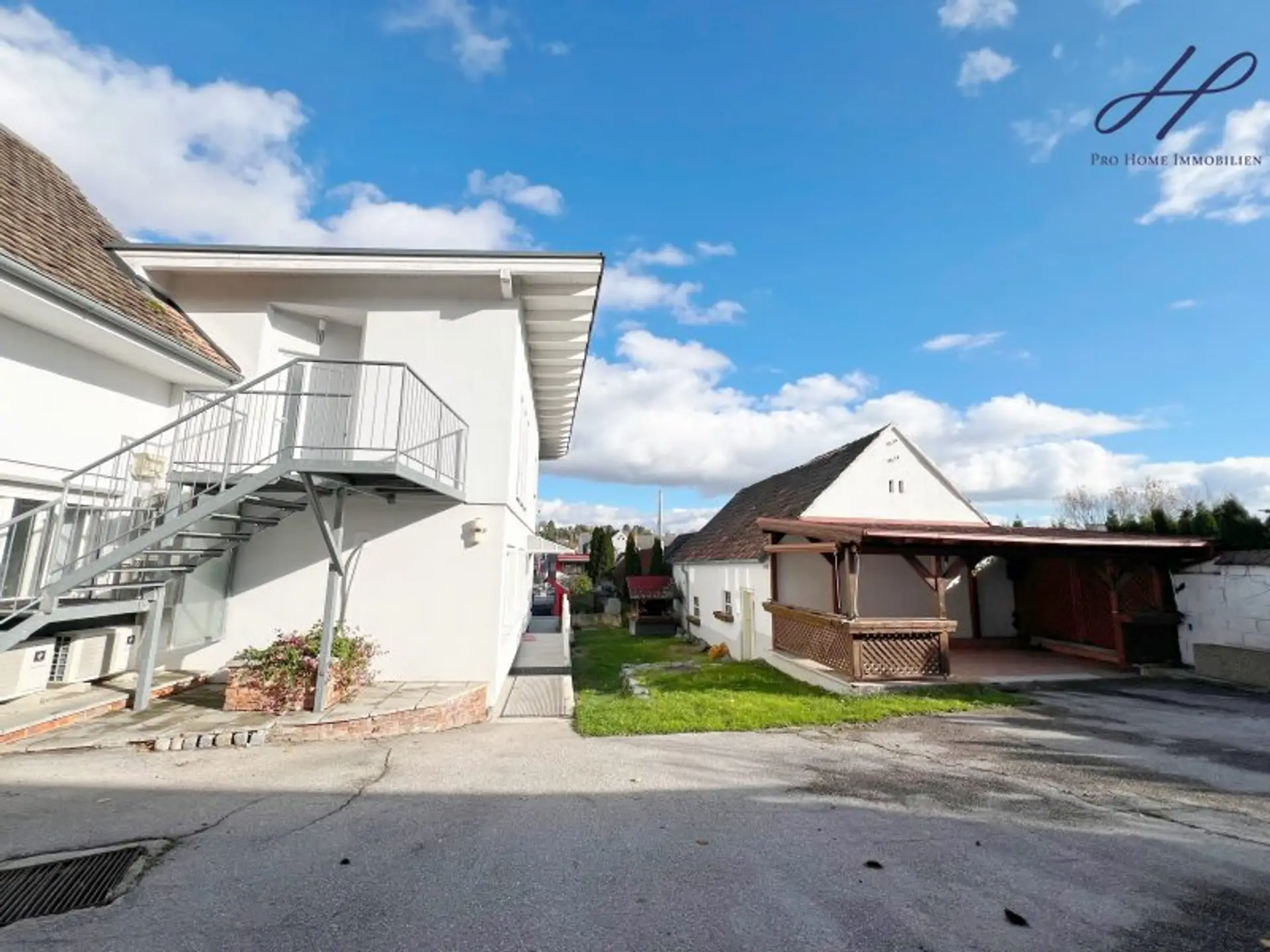 In dem sanierten Gebäude mit L-förmigen Grundriss befindet sich die Durchfahrt zum Innenhof, 2 Garagen mit elektrischen Toren, sowie ein Heiz- & Tankraum und ein Abstellraum, die Böden sind betoniert.