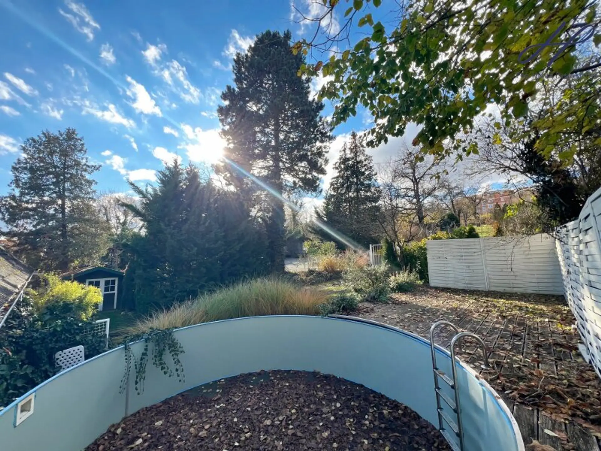 Eine überdachte Terrasse mit Grillplatz lädt im Sommer zum Verweilen ein, ebenso wie der große vor Blicken geschützte Pool, welcher sich oberhalb der Einfahrt befindet.