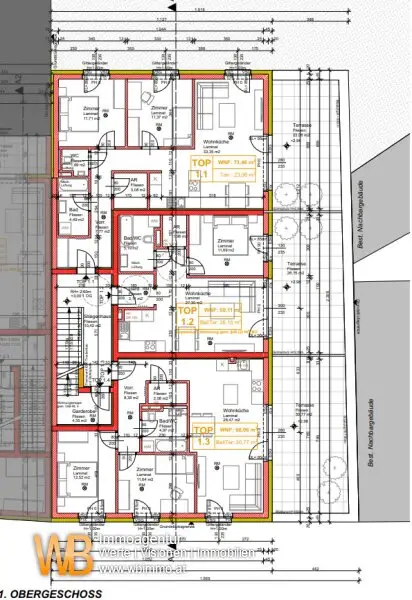 Insgesamt bieten wir 16 Wohnungen an auf 1. und 2. Etage, im Erdgeschoss befinden sich die Garagen mit 24 Garagenplätzen. Gebaut wird in Niedrigenergiebauweise. Im Expose sende ich den Einreichplan für alle Wohnungen von 55m² bis 112m² zzügl. Terrassen ad € 270.000.- bis € 557.000.- sowie die genauen Daten und Preise zu den einzelnen schlüsselfertigen Wohnungen. BESICHTIGUNGEN: Tel. 0699 116 484 32