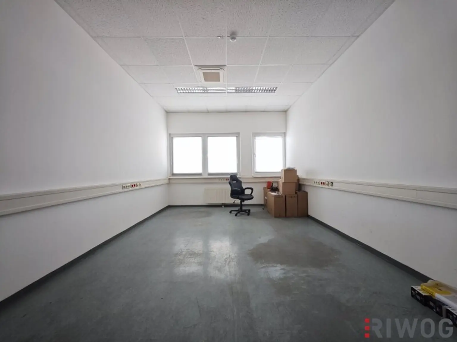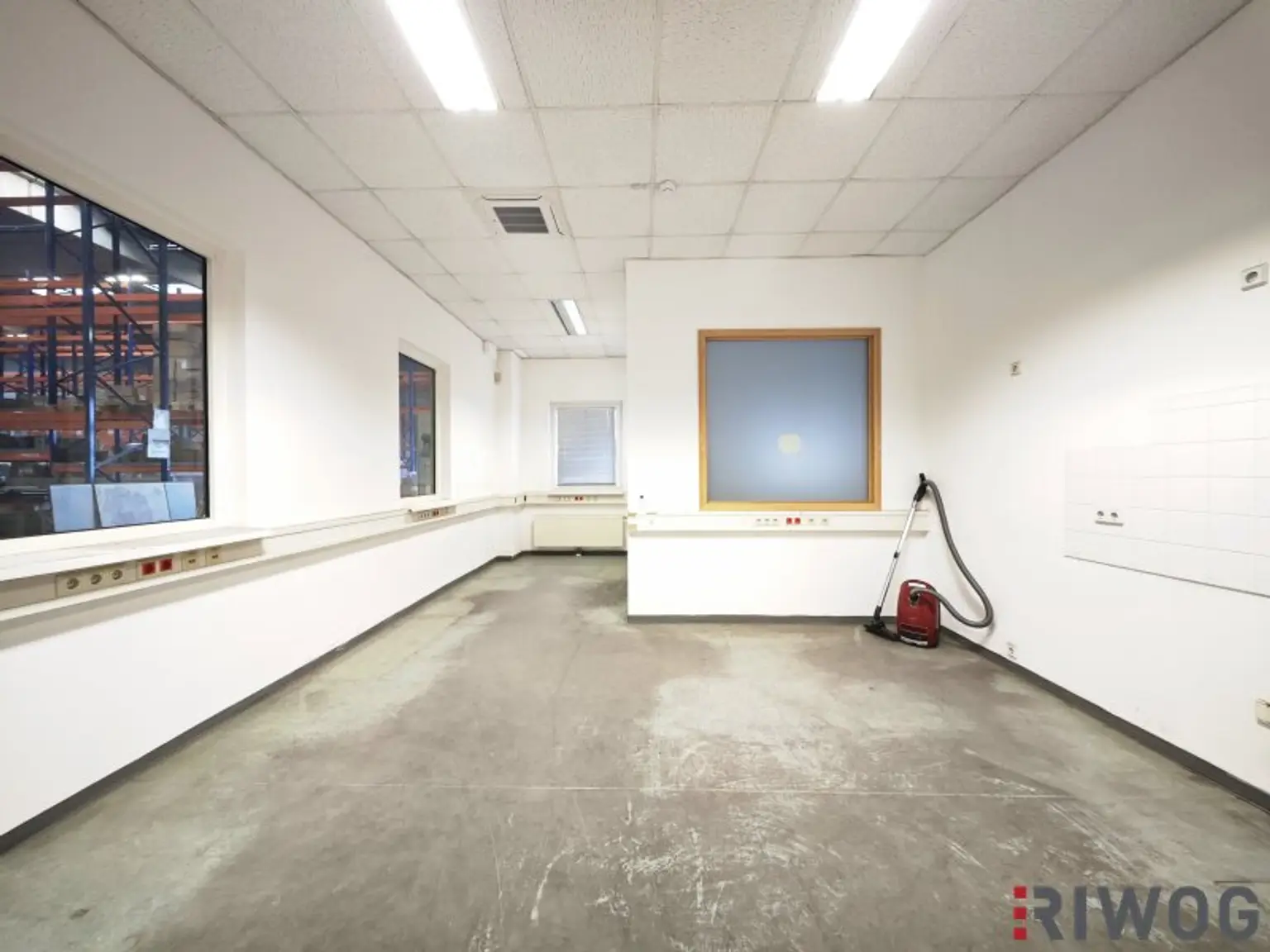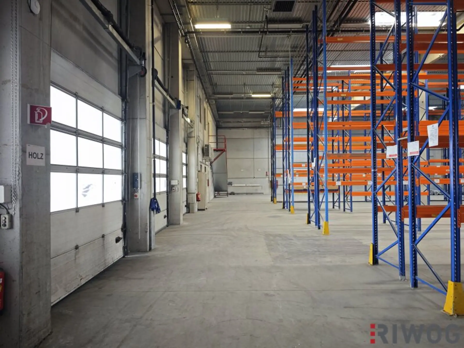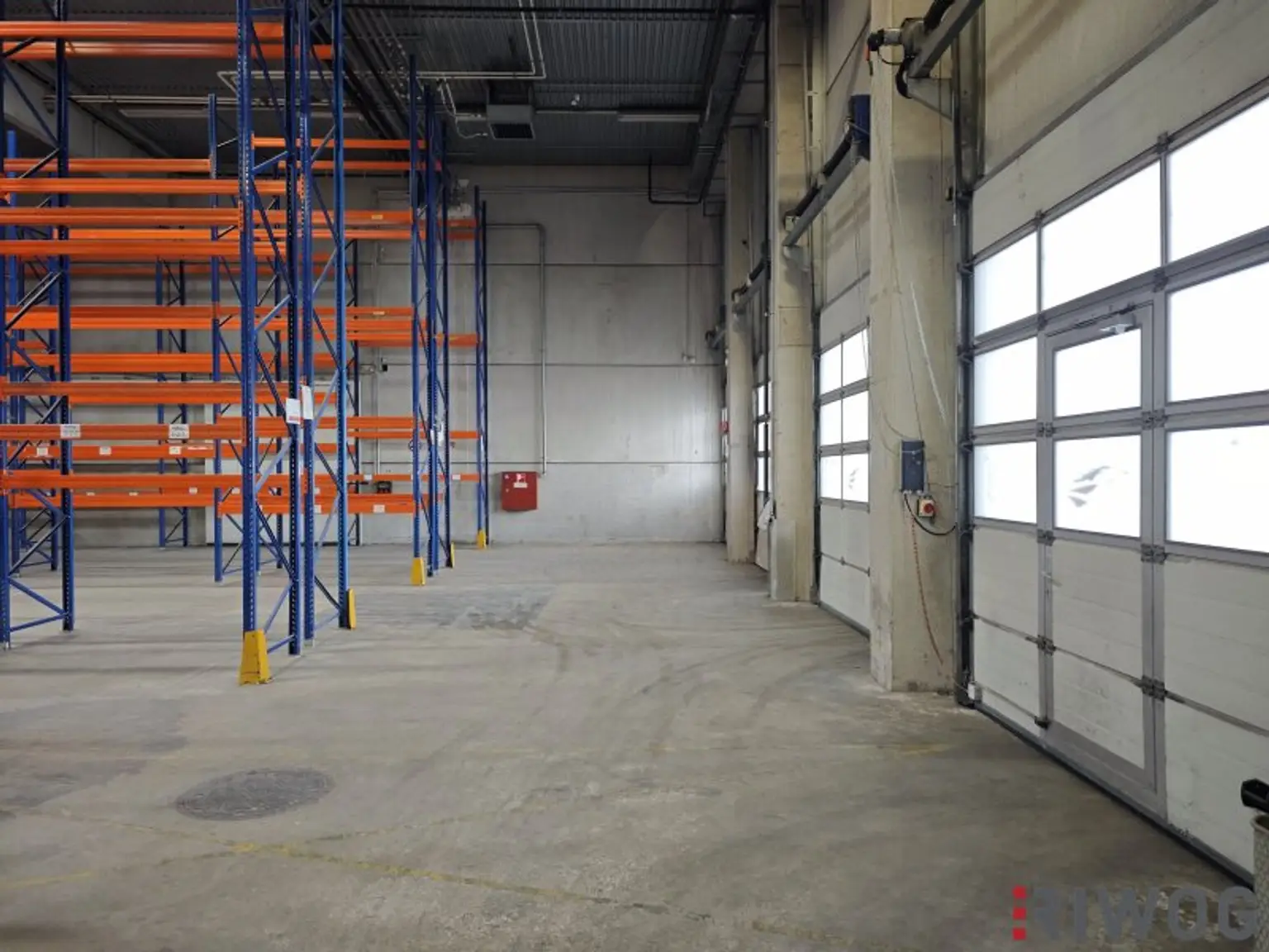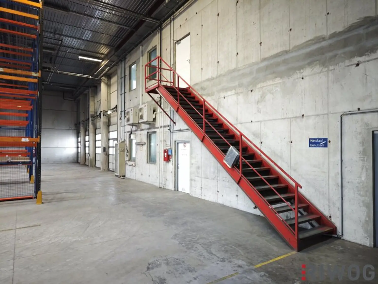 Die Halle auf Rampenniveau hat ein Gesamtausmaß von ca. 2.082m². Zugehörig ist ein Büro samt Nebenräumen im Ausmaß von ca. 148m² und eine überdachte Rampe mit ca. 107m².