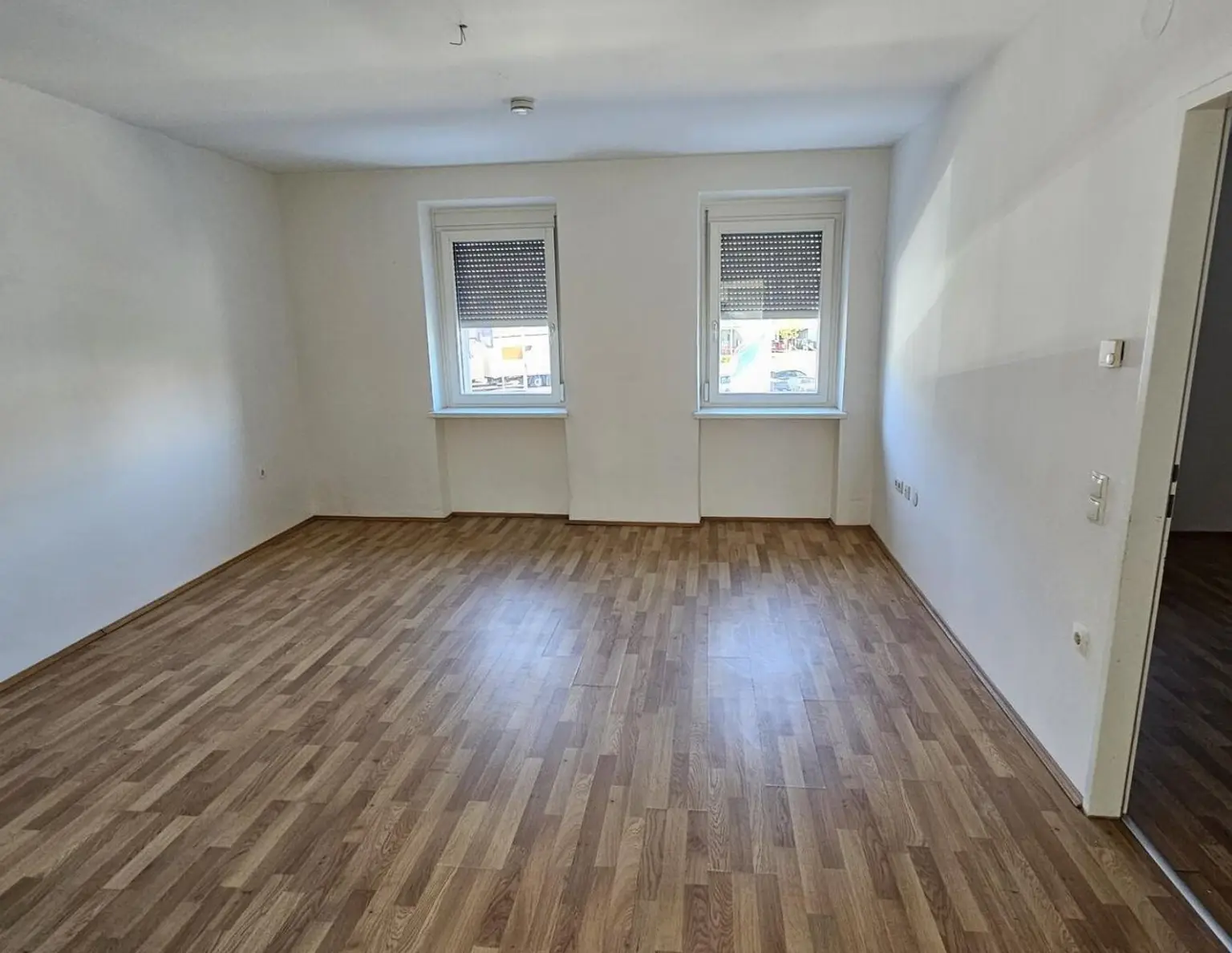 - Vorraum mit Zugang zu WC, Bad und Küche - Wohnzimmer, Esszimmer und Küche sind nicht durch Türen getrennt - Schlafzimmer - Badezimmer mit Dusche - WC Die Fenster sind mit Außenrollos ausgestattet Gute Infrastruktur…