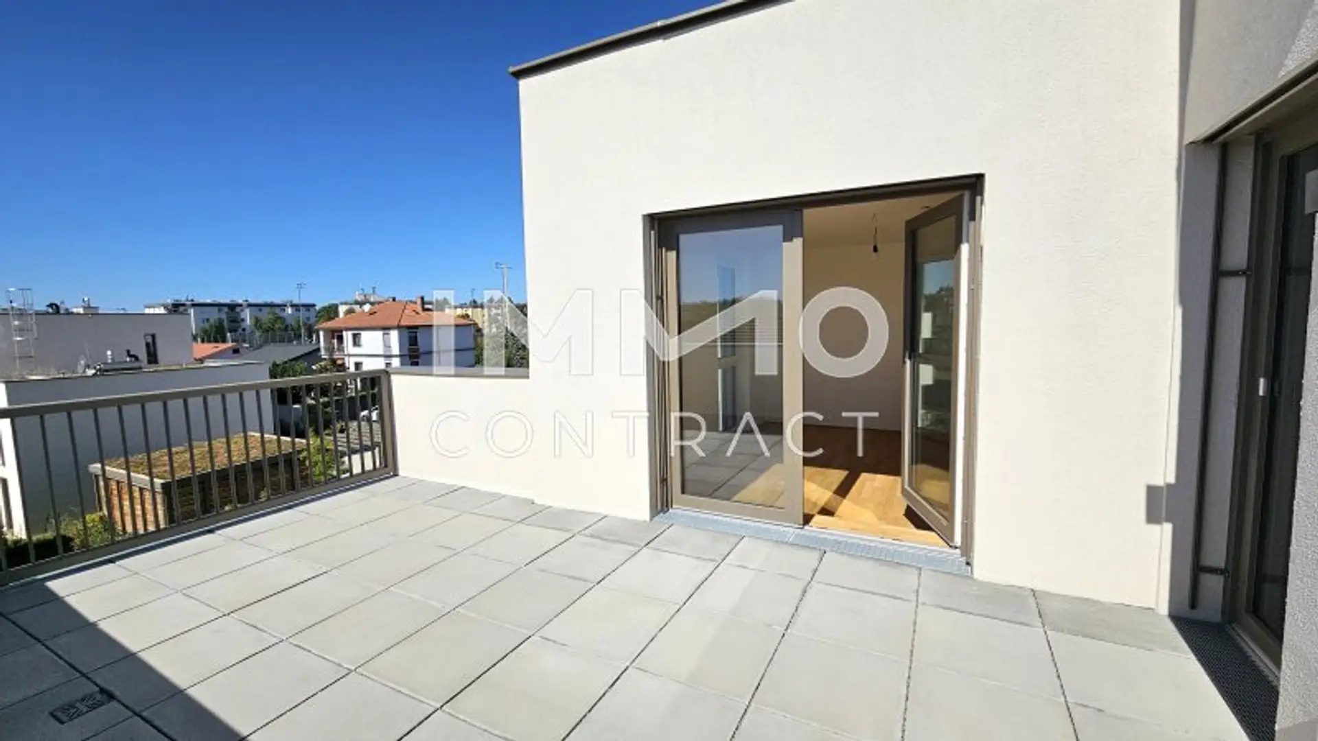Diese traumhafte 4-Zimmer-Wohnung befindet sich im obersten Stockwerk mit Lift, besticht durch ihre 2 großen Dachterrassen und ist nach Süden/Westen ausgerichtet. Sie besteht aus einem großen Wohn-/Esszimmer, Küchenecke und Ausgang auf eine der Terrassen. Die 3 Schlafzimmer, eines davon mit Zugang zur weiteren Terrasse, zeigen in die ruhige Anlage nach Westen und Norden. Das Bad mit Badewanne, Dusche, WC und Waschmaschinenanschluss ist zeitlos weiß verfließt. Ein separates Gäste-WC ist auch vorhanden. Das große Vorzimmer und der Abstellraum bieten viel Stauraum. Ein Kellerabteil mit ca. 6 m2 ist der Wohnung ebenfalls zugeordnet.