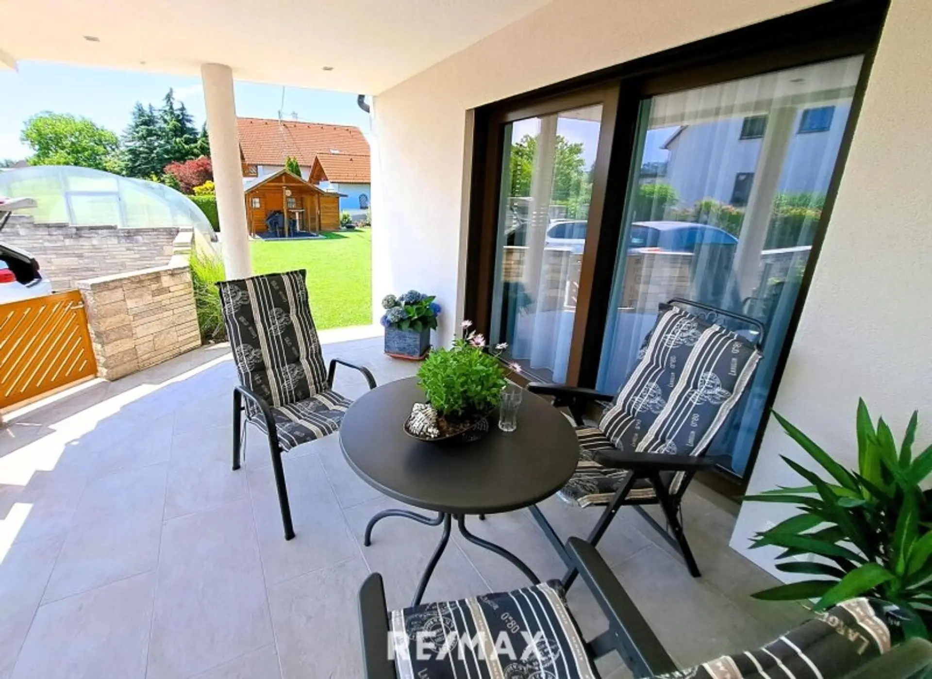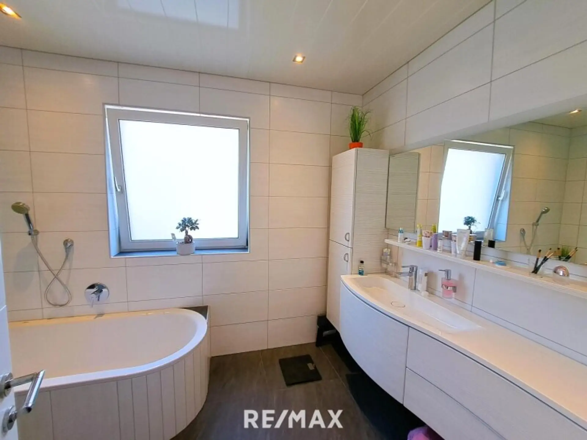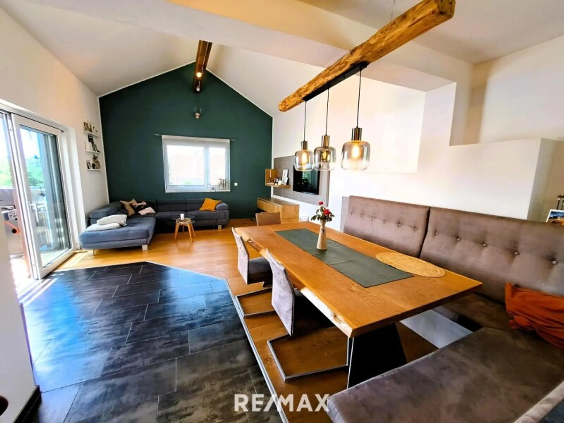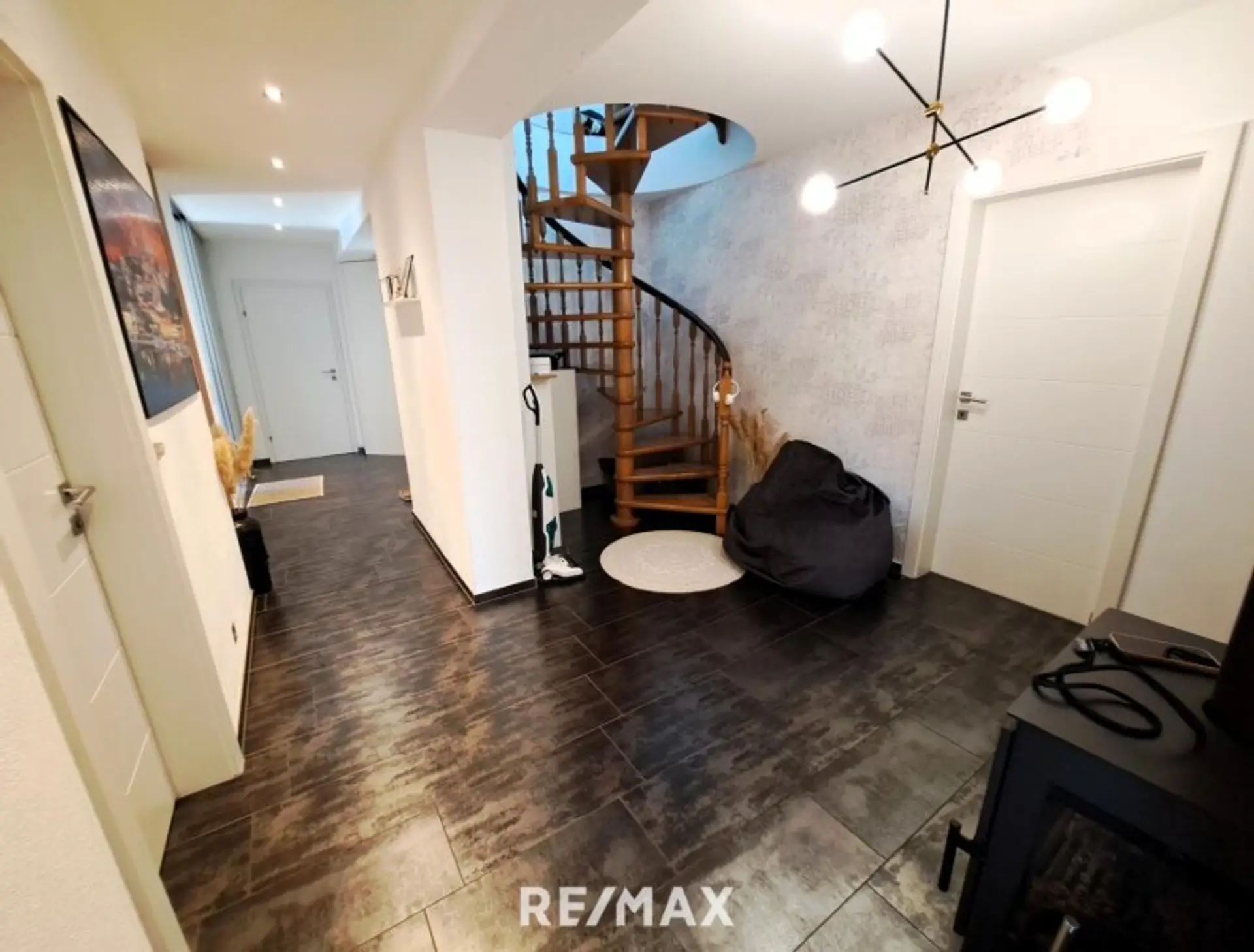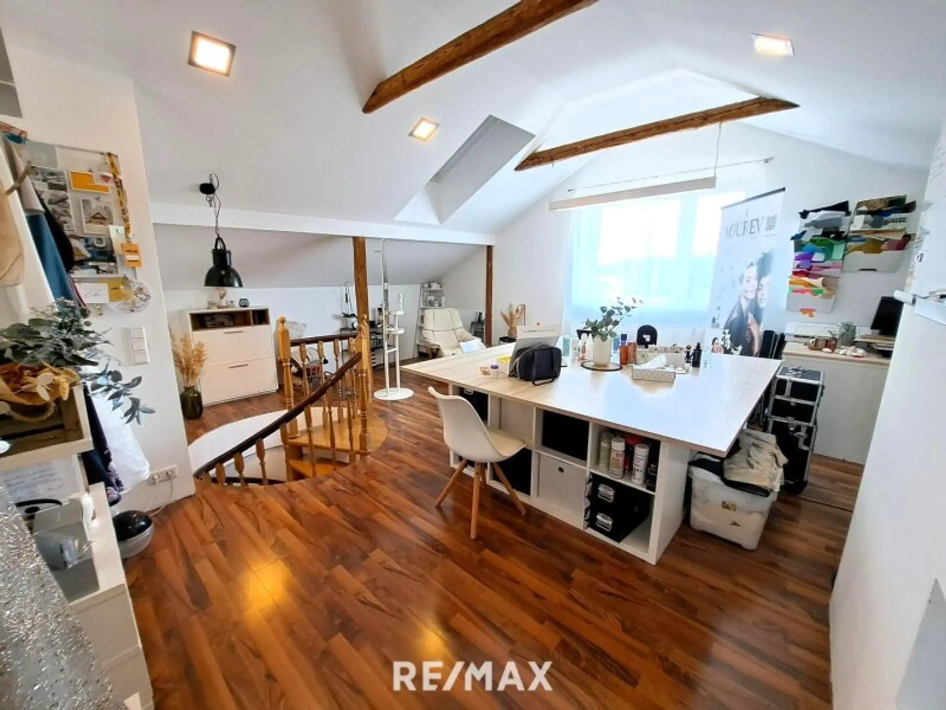 Im Obergeschoß ergänzen die mit Betonstein in Holzoptik geflieste, überdachte Terrasse und ein im Dachgeschoß errichtetes ca. 55 m² großes Atelier den Wohntraum.