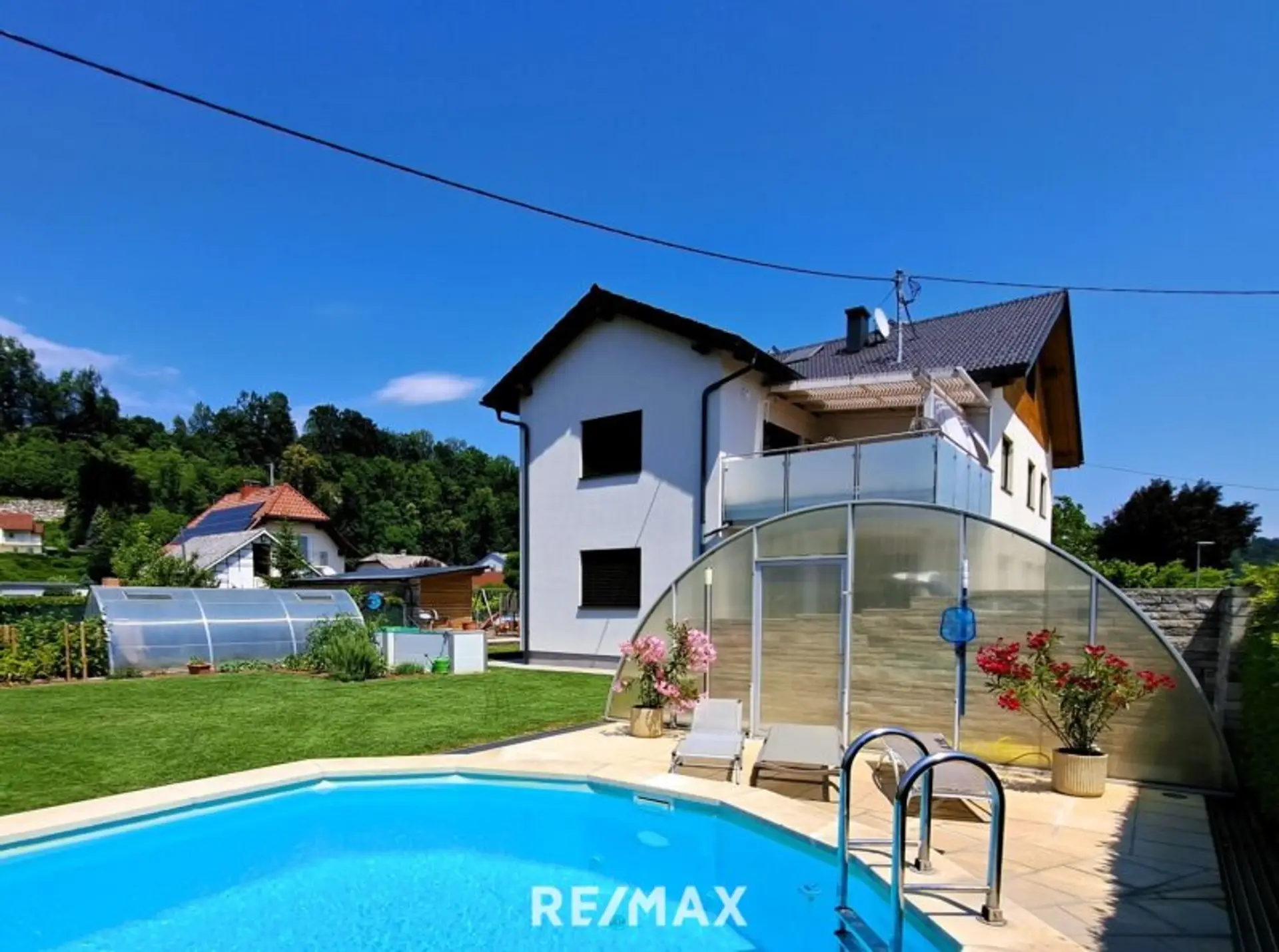 Pool, Poolhaus, zwei Terrassen und ein großes Gartenareal bereichern den Lebensraum.