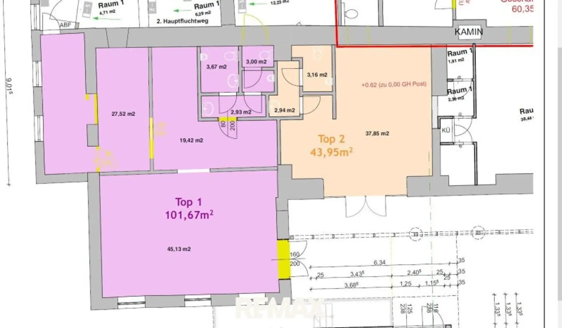 für die größere Einheit: €800,- + 20% USt + Betriebskosten €3,-/m²