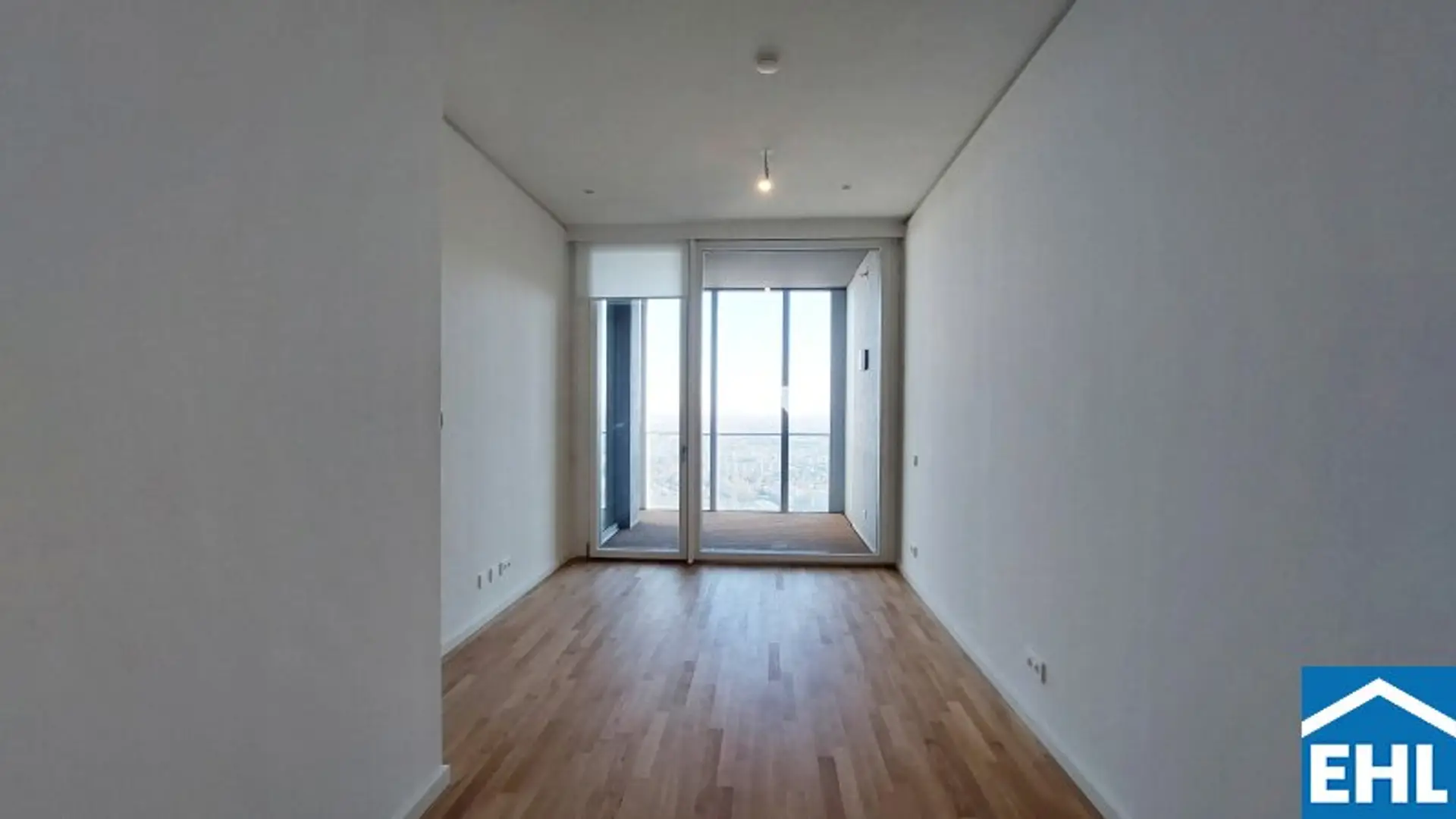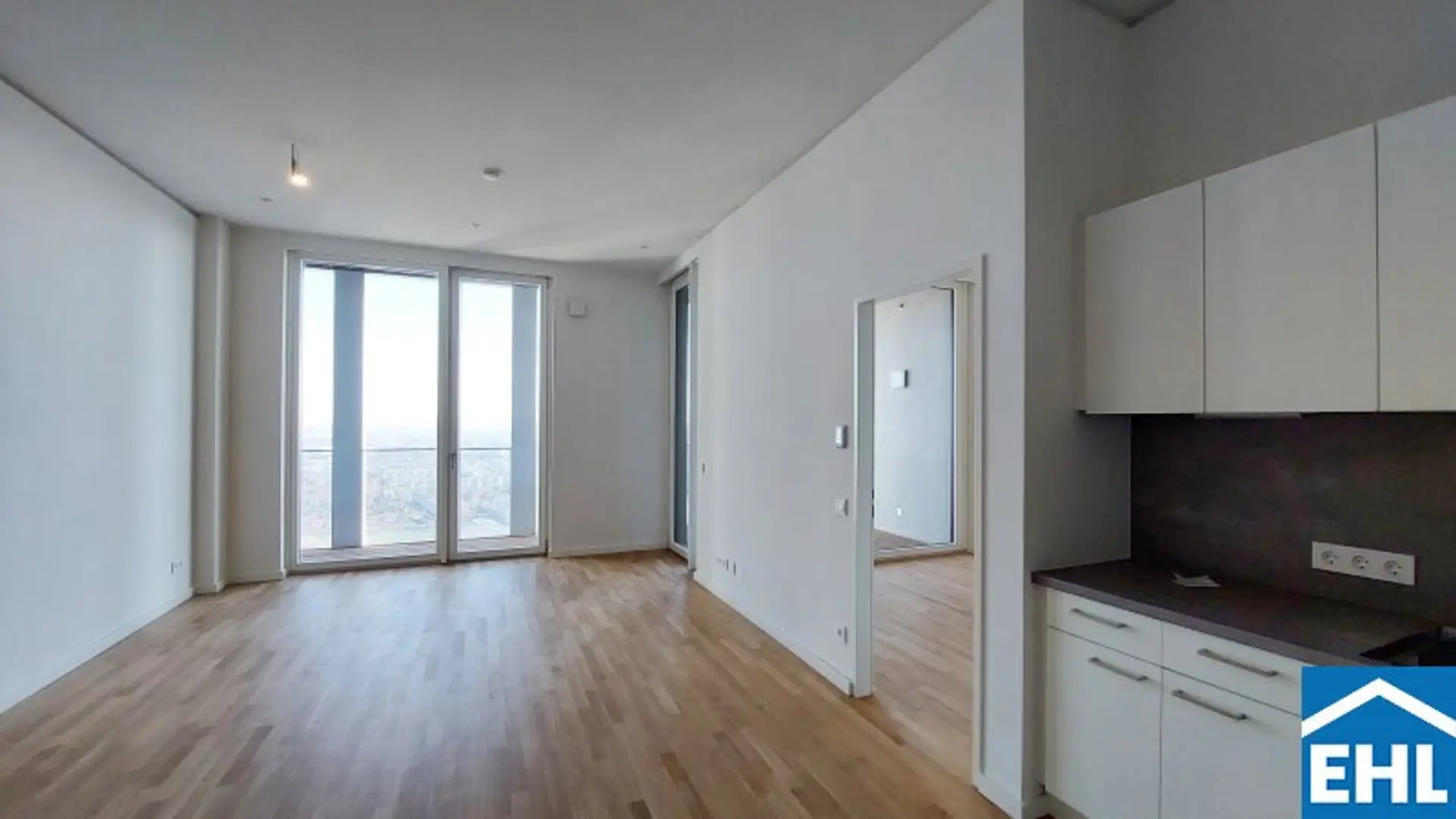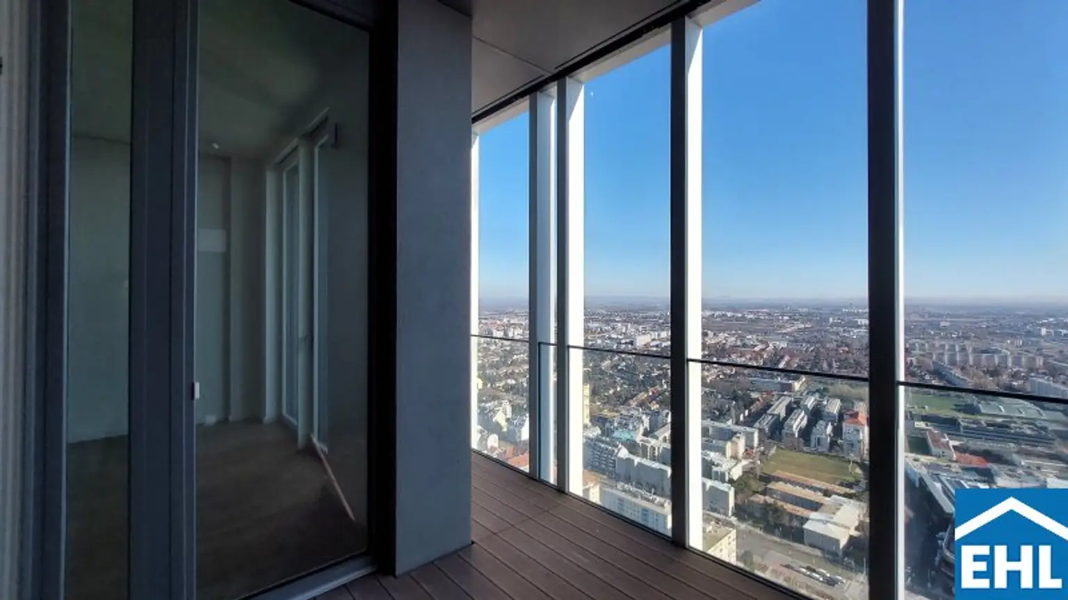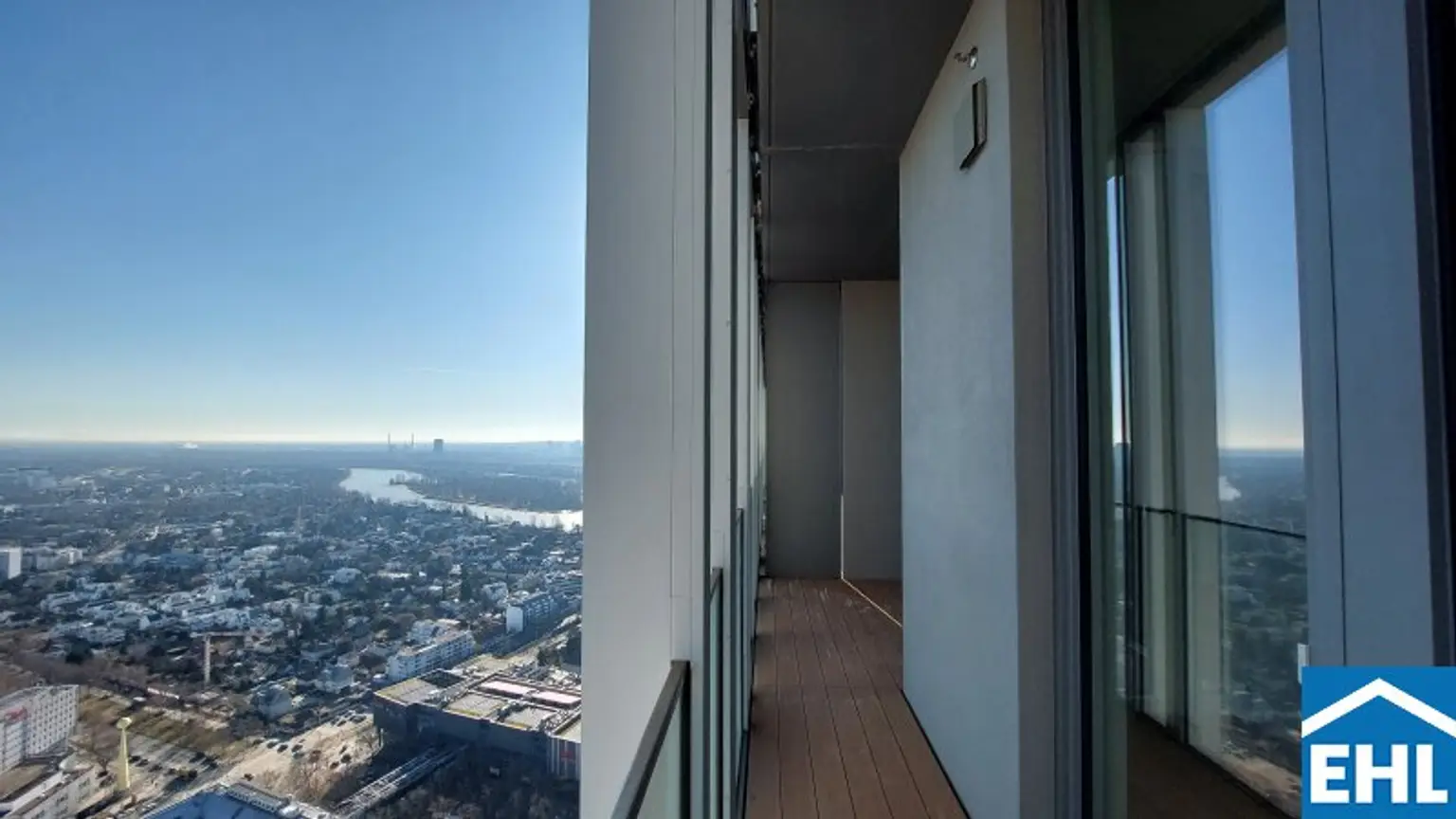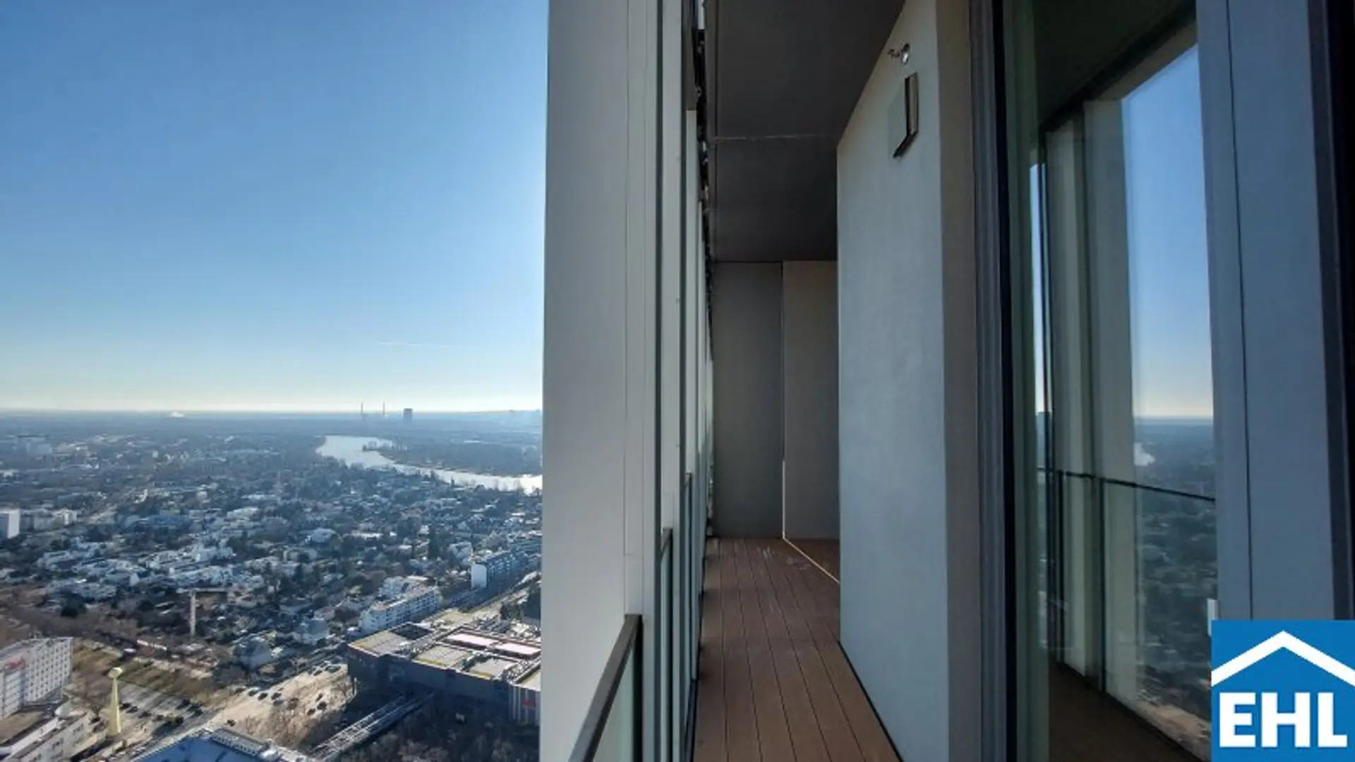 In einzigartiger Lage, direkt bei der U1-Station _Kagran_ und vis-à-vis vom Donau Zentrum, entsteht ein exklusiver, ca. 155m hoher Wohnturm mit 45 Etagen. Die insgesamt 347 Mietwohnungen bieten einen vielfältigen Wohnungsmix: von smart geschnittenen 1,5-Zimmer-Apartments ab ca. 38 m² über komfortable 2-Zimmer-Wohnungen bis hin zu großzügigen 3- und 4-Zimmerwohnungen mit bis zu ca. 80 m².