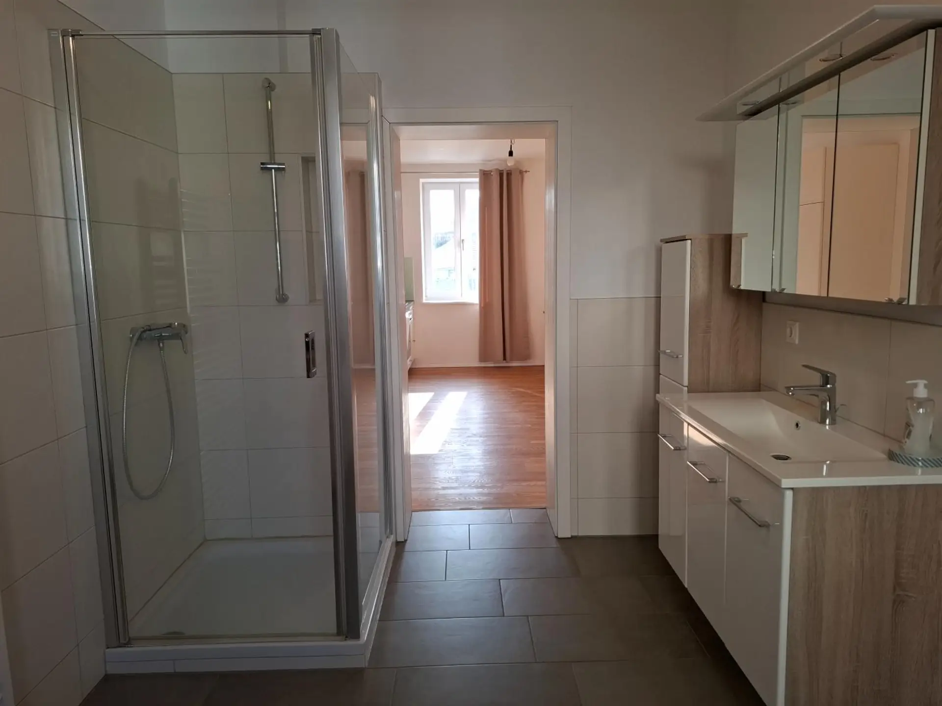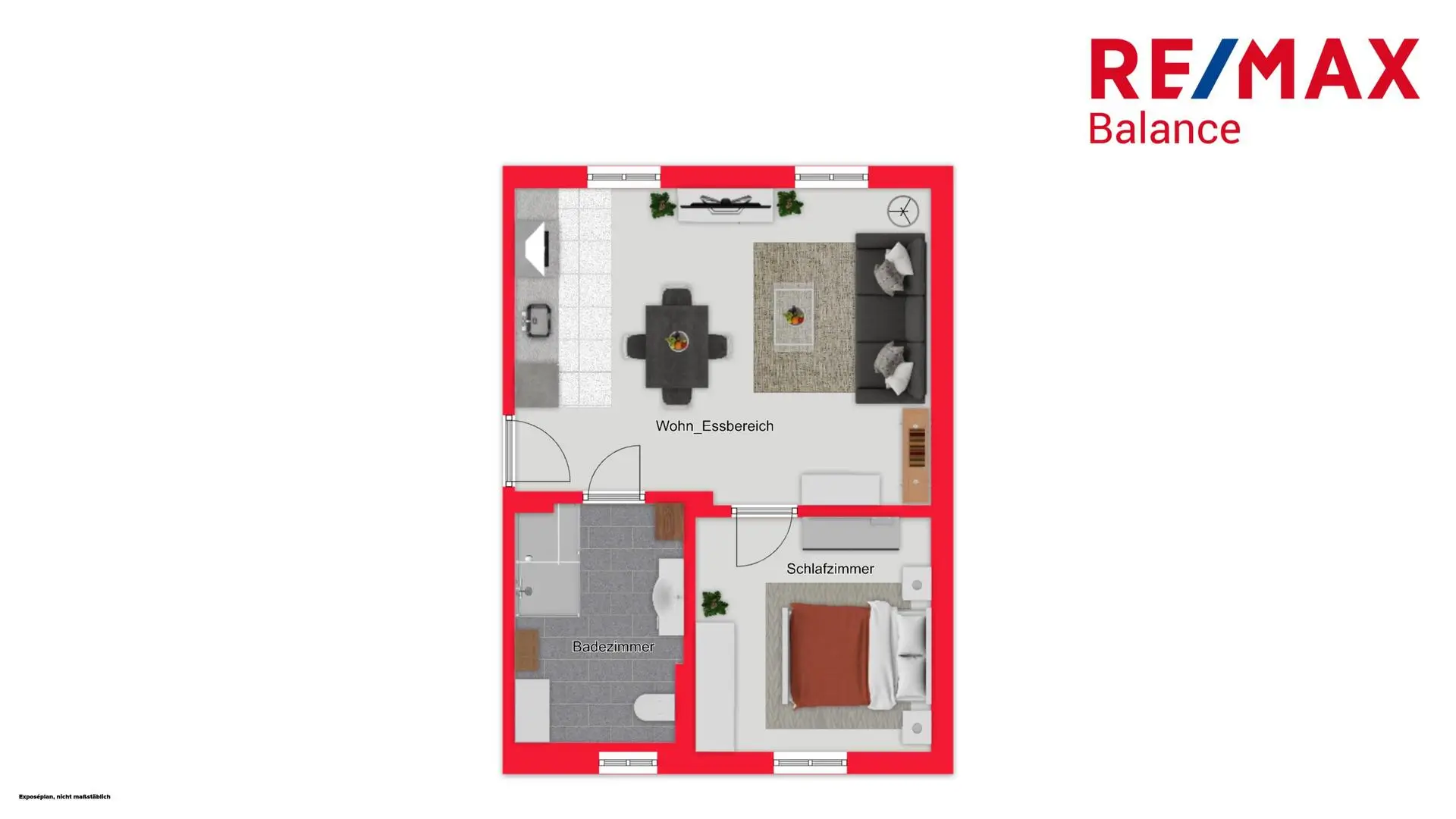 Ein offener Wohn-Essbereich, ein modern verfliestes Bad mit Dusche und WC sowie ein gemütliches Schlafzimmer mit ca. 12 m² stehen zu Ihrer Verfügung.