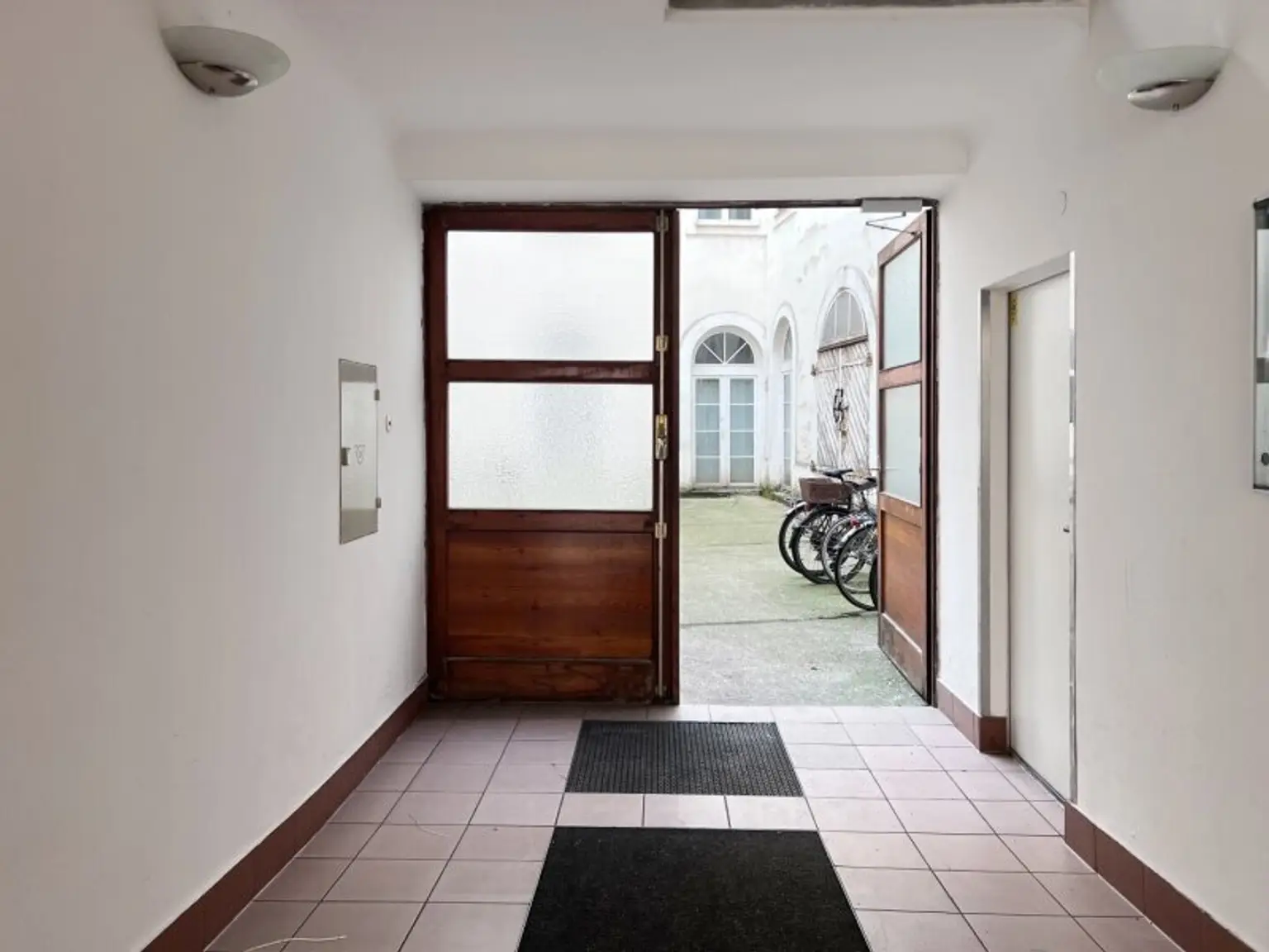Die Wohnung befindet sich in der zweiten (hinteren) Stiege des Wohnhauses, alle Zimmer sind in den Innenhof ausgerichtet. Sie haben also nicht nur den Vorteil einer zentralen Wohnlage, sondern sind auch noch abgeschirmt gegen die Geräuschkulisse der Außenwelt!