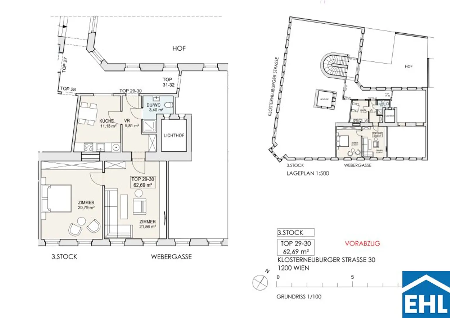 Zum Verkauf steht eine gepflegte 2-Zimmer-Wohnung in der 3. Etage eines Altbaus aus dem Jahr 1900. Die Liegenschaft befindet sich in der Webergasse 19, an der Ecke zur Klosterneuburger Straße 30, nur wenige Gehminuten vom beliebten Augarten entfernt.