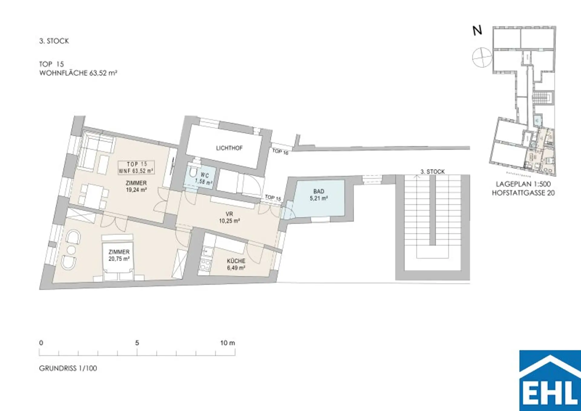 Zusätzlich zu dem gepflegten Innenhof und einem Kellerbateil je Wohnung wird außerdem ein Lift vertraglich zugesichert, dessen Errichtung innerhalb der kommenden drei Jahre erfolgen wird – ein wertvoller Gewinn für das gesamte Gebäude.