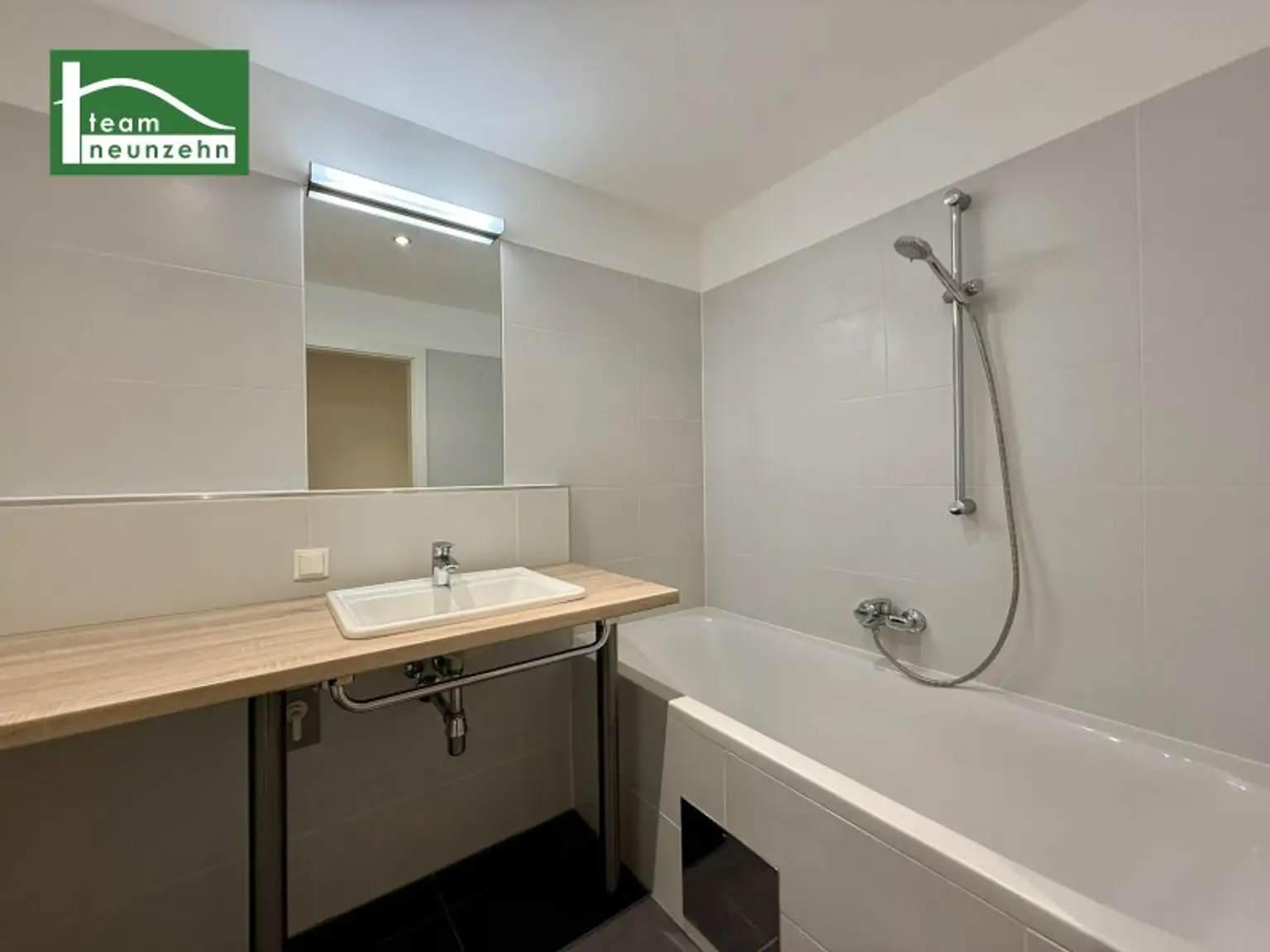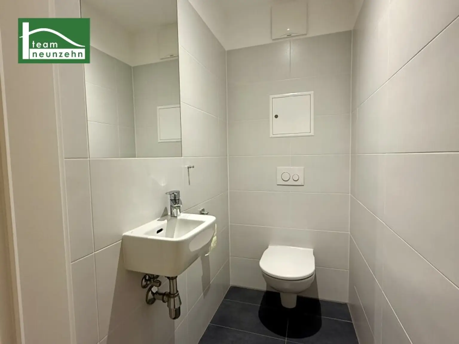 * Großformatige Fliesen sowie geschmackvolle Sanitäreinrichtung