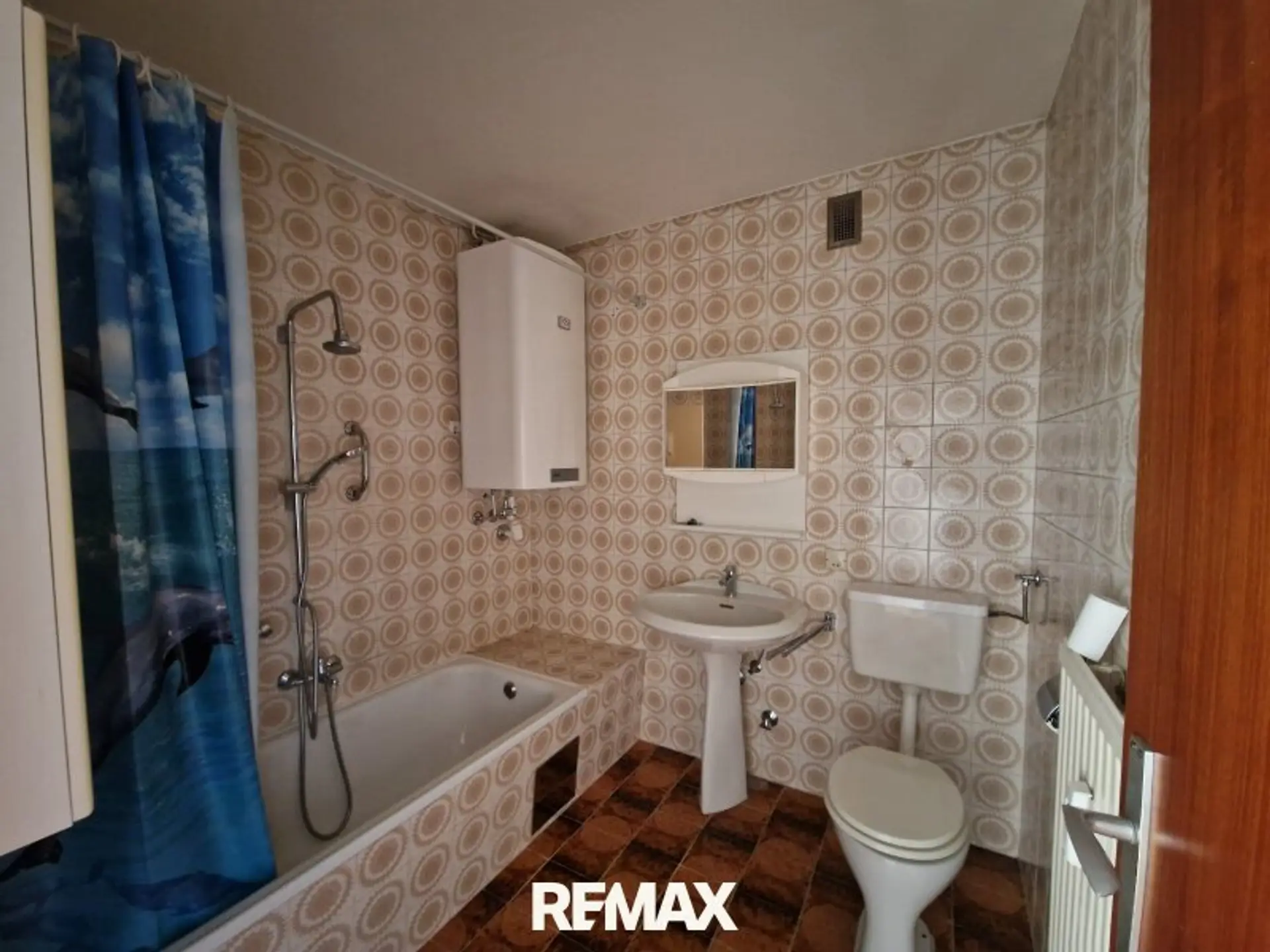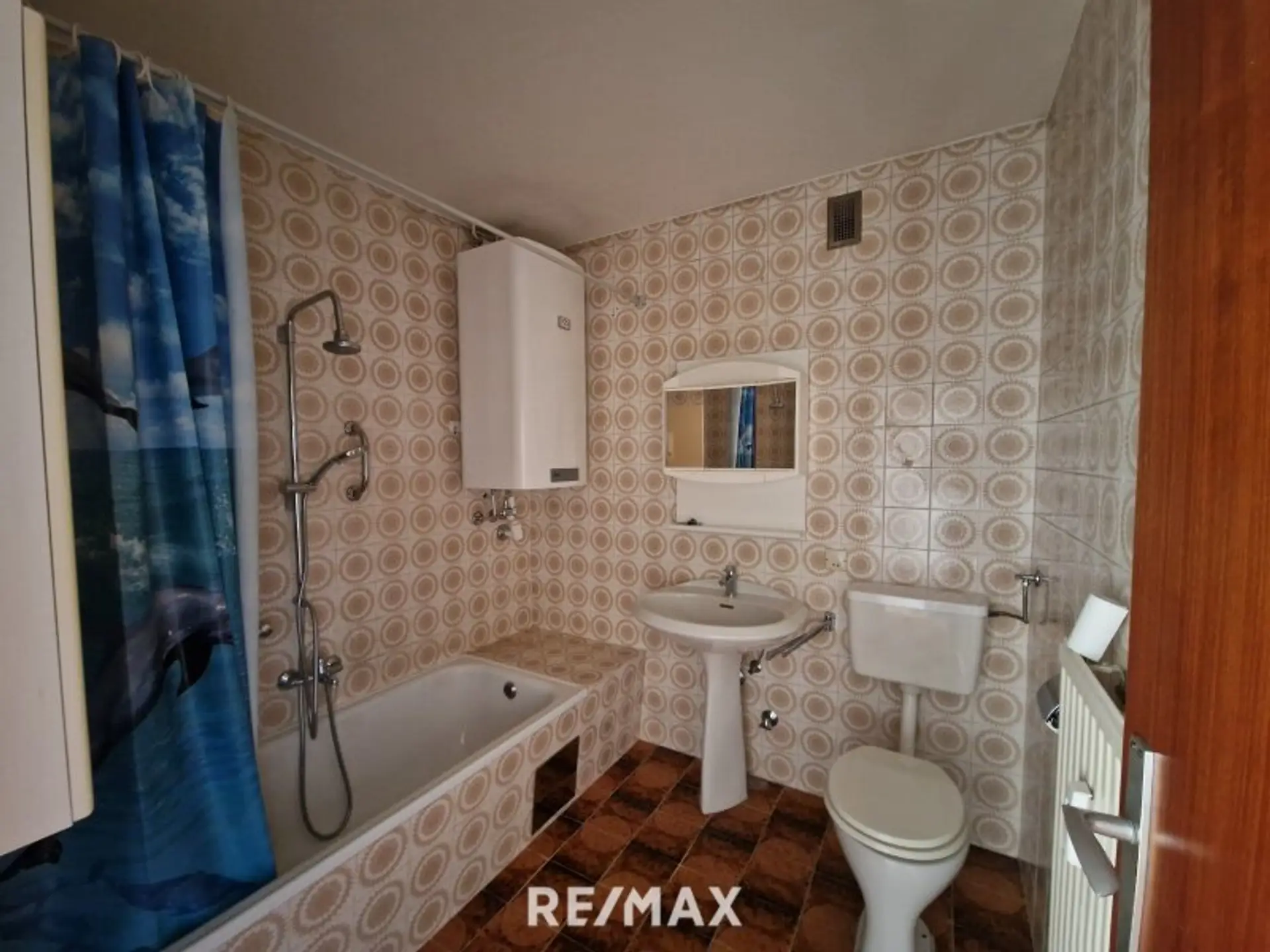 Das Badezimmer mit WC ist praktisch gestaltet. Im Vorraum sowie im Küchenbereich befinden sich Einbauschränke, die zusätzlichen Stauraum schaffen und eine gute Nutzung der vorhandenen Fläche ermöglichen.