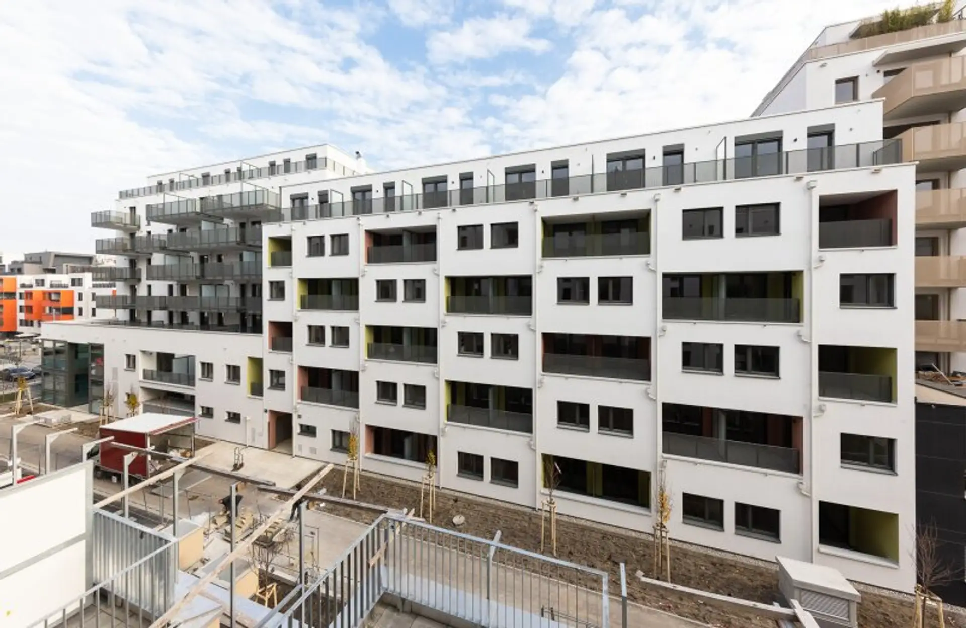 Auf dem Gebiet der ehemaligen Hrachowina-Gründe stehen 2- und 3-Zimmer-Wohnungen, alle inkl. privater Freifläche wie Garten, Balkon, Terrasse oder Loggia zur Anmietung. Das Wohngebäude teilt sich in zwei Stiegen und ist umgeben von einer Vielzahl an Grünflächen und liegt in einem Ruhegebiet.